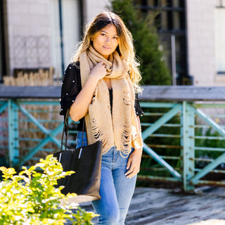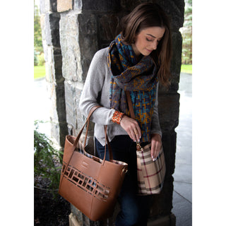 Ivory Plaid 58.5" x 11" Flannel Pocket Scarf