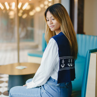 Navy Anchors 17" x 41" Faux Sweater Scarf