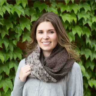 Warm Brown Weave Knit & Faux Fur Infinity Scarf