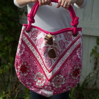 Vanessa Floral Cotton Bag 13.25" x 15" Fuchsia Purse/Bag