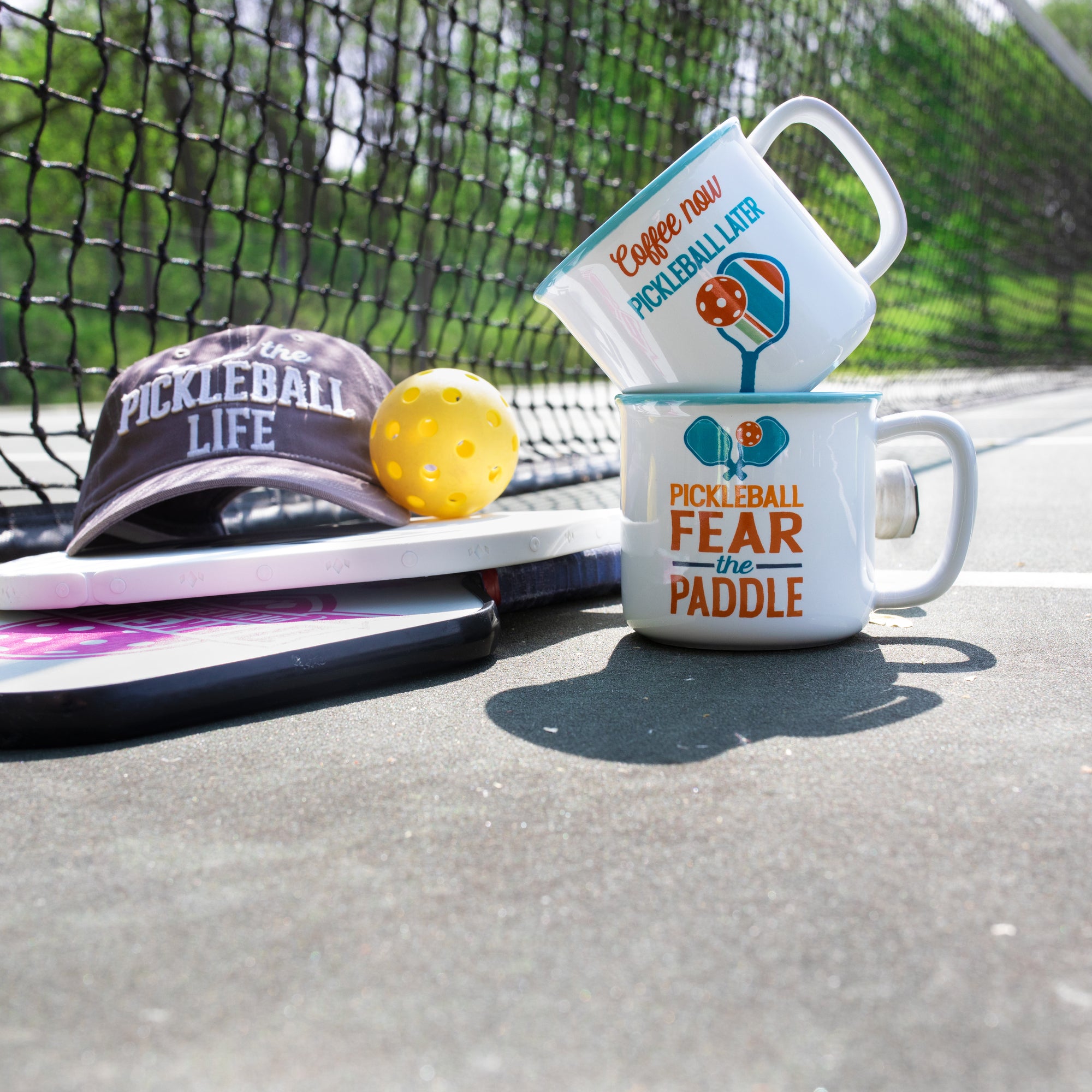 - IN-HOUSE DESIGN: This 18 oz mug has an interior with a vibrant diagonal striped pattern in white, green, teal, and orange, adding a pop of color to your drinking experience. The exterior front side features a single-sided design with the sentiment "Coffee Now Pickleball Later" in a 70's style font, accompanied by a paddle with an orange pickleball. The sturdy handle on the right side ensures a comfortable grip for sipping your favorite beverage.