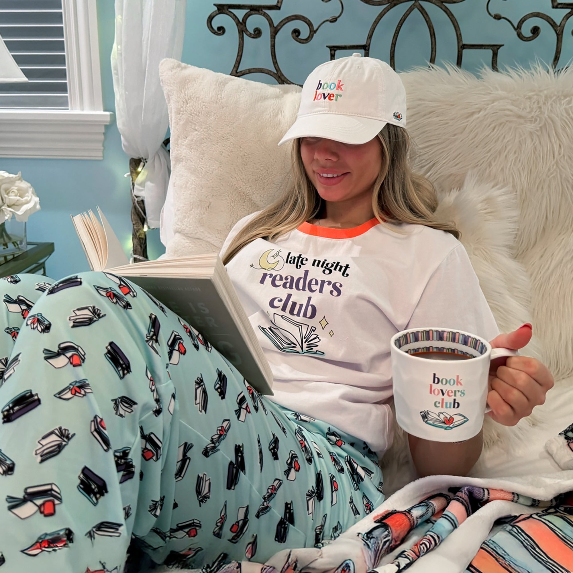 • IN-HOUSE DESIGN: From Pavilion’s All Booked Up collection, this shirt features a whimsical printed design that reads “Late Night Readers Club” with a moon, stars, and open book illustration. The soft palette and cozy message celebrate the joy of late-night reading and quiet moments of imagination. Perfectly pairs with the matching loungewear pants for a coordinated bedtime look that’s equal parts comfort and charm.