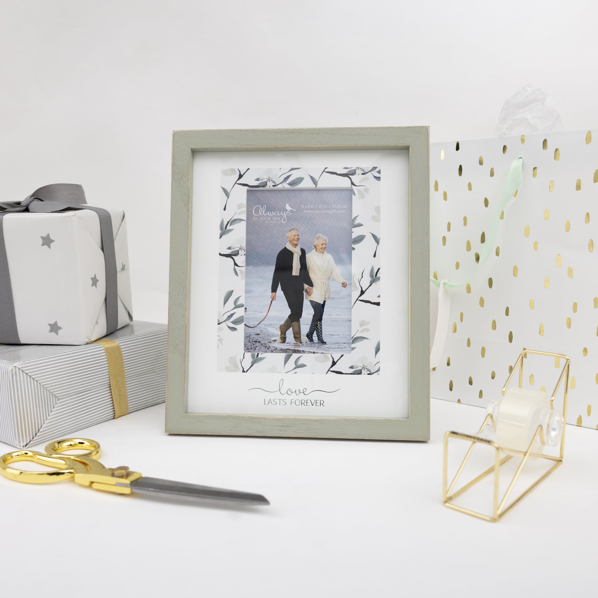 - IN-HOUSE DESIGN: Elegantly displayed, our memorial picture frame features a poignant silver foil sentiment, "Love Lasts Forever," gracefully positioned below the portrait. Surrounding the photograph is a beautiful cherry blossom tree pattern. Your memories are beautifully framed, offering solace and a tangible connection to your loved one's spirit.