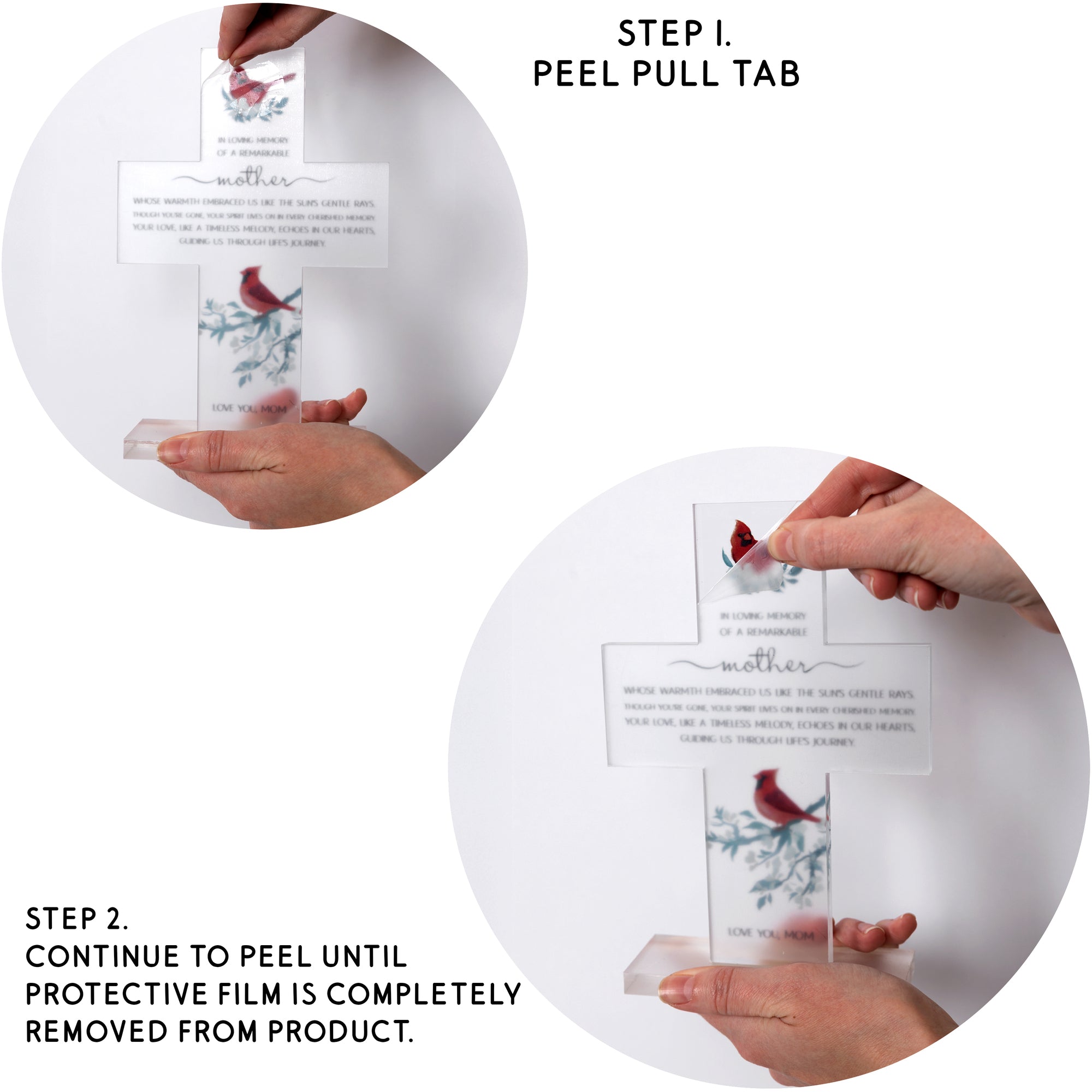 - CARE INSTRUCTIONS: In order to make sure your cross is protected, there is a thin sheet of plastic overlaid on top to prevent scratches. Peel this sheet away to showcase your beautiful plaque. To maintain the pristine condition of this acrylic cross plaque, gently wipe it clean with a soft, dry cloth. Avoid harsh chemicals or abrasive materials that could damage the surface. The plaque is packaged in a secure white die-cut box, ensuring safe shipping and easy gifting. Keep this heartfelt memento on a stable surface to prevent tipping and preserve its beautiful, lasting quality for years to come.