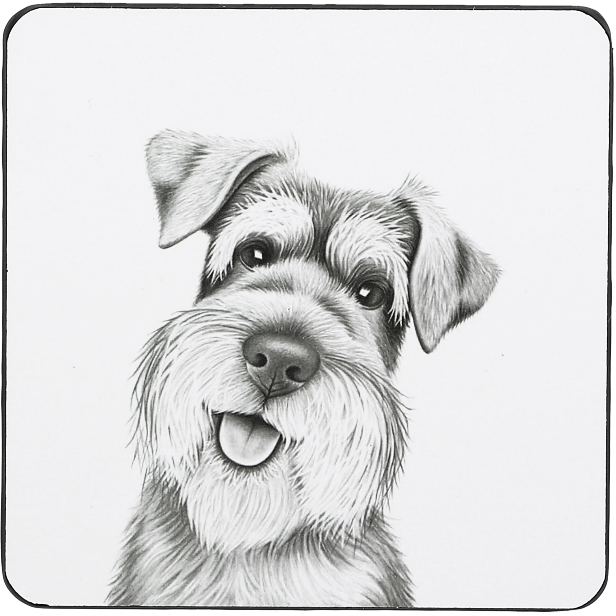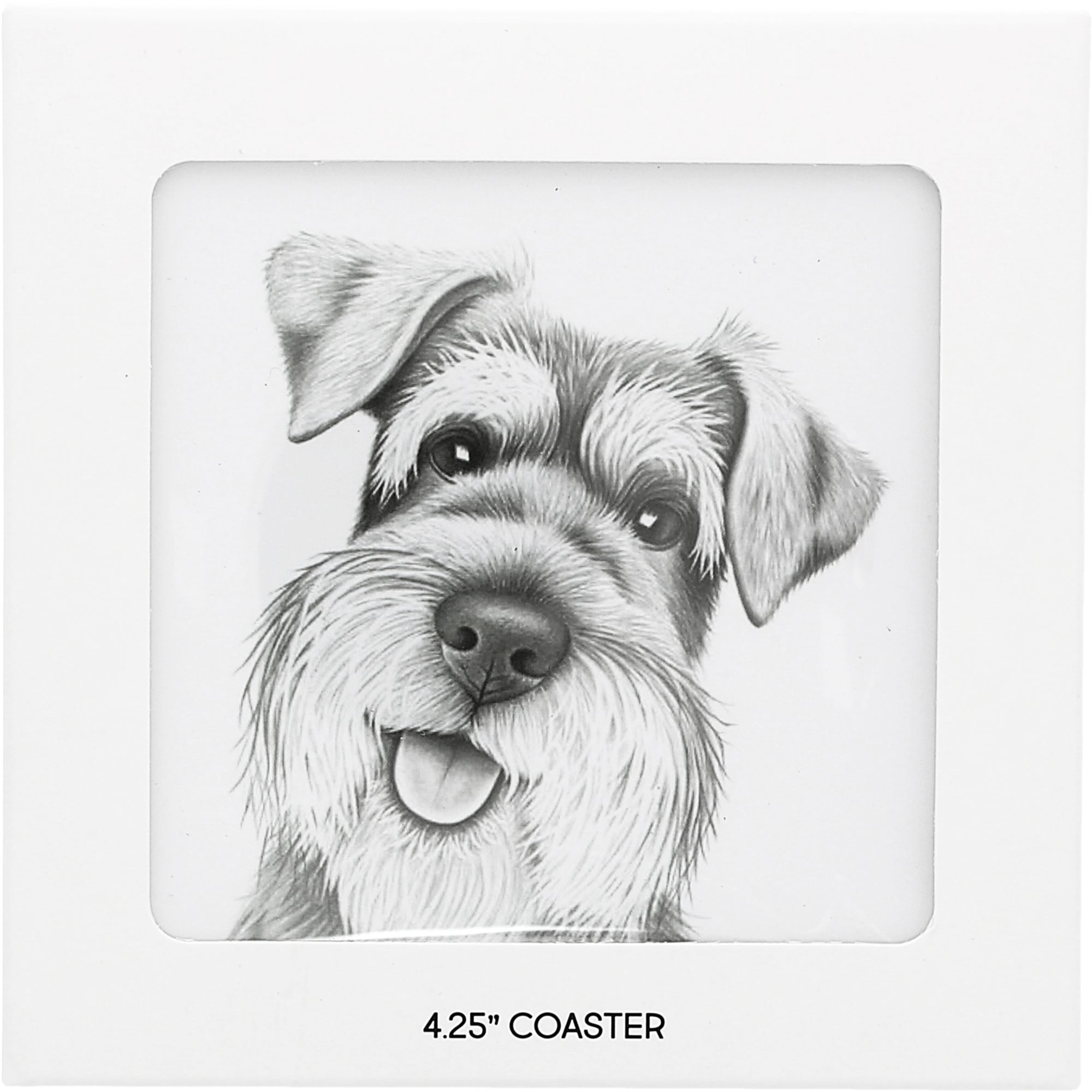 - IN-HOUSE DESIGN: From the Animal Antics by Katherine Sheard collection, this coaster features a lifelike pencil-style illustration of a cheerful Schnauzer. The black-and-white artwork highlights the breed’s distinctive personality, expressive eyes, and textured fur, capturing its lovable, loyal nature in an artful and humorous way.