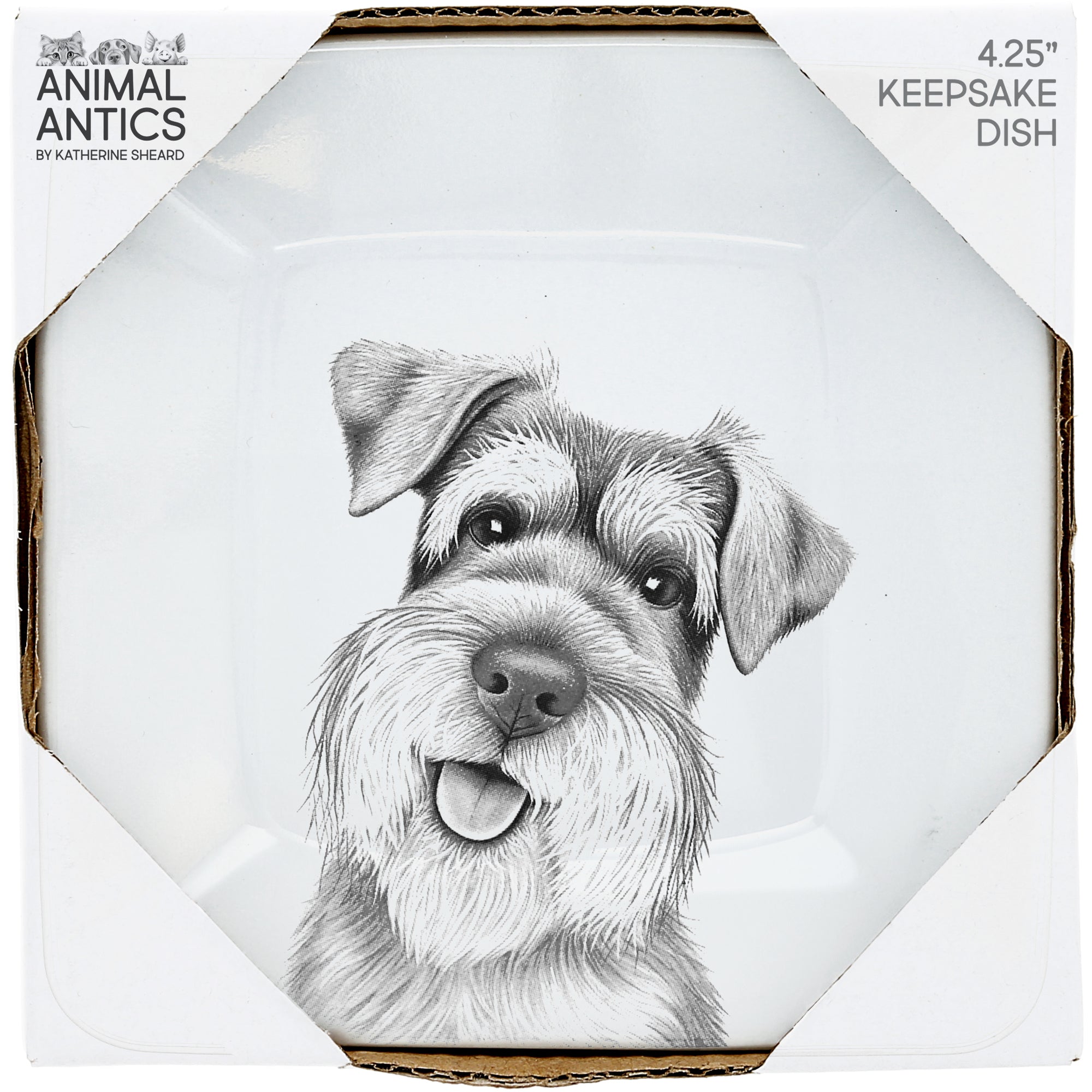 - IN-HOUSE DESIGN: From the Animal Antics by Katherine Sheard collection, this keepsake dish showcases the artist’s beloved dog illustration, capturing the Schnauzer’s playful yet loyal personality through expressive detail. The black-and-white sketch design pairs effortlessly with any décor, blending humor, realism, and heart in one charming piece.