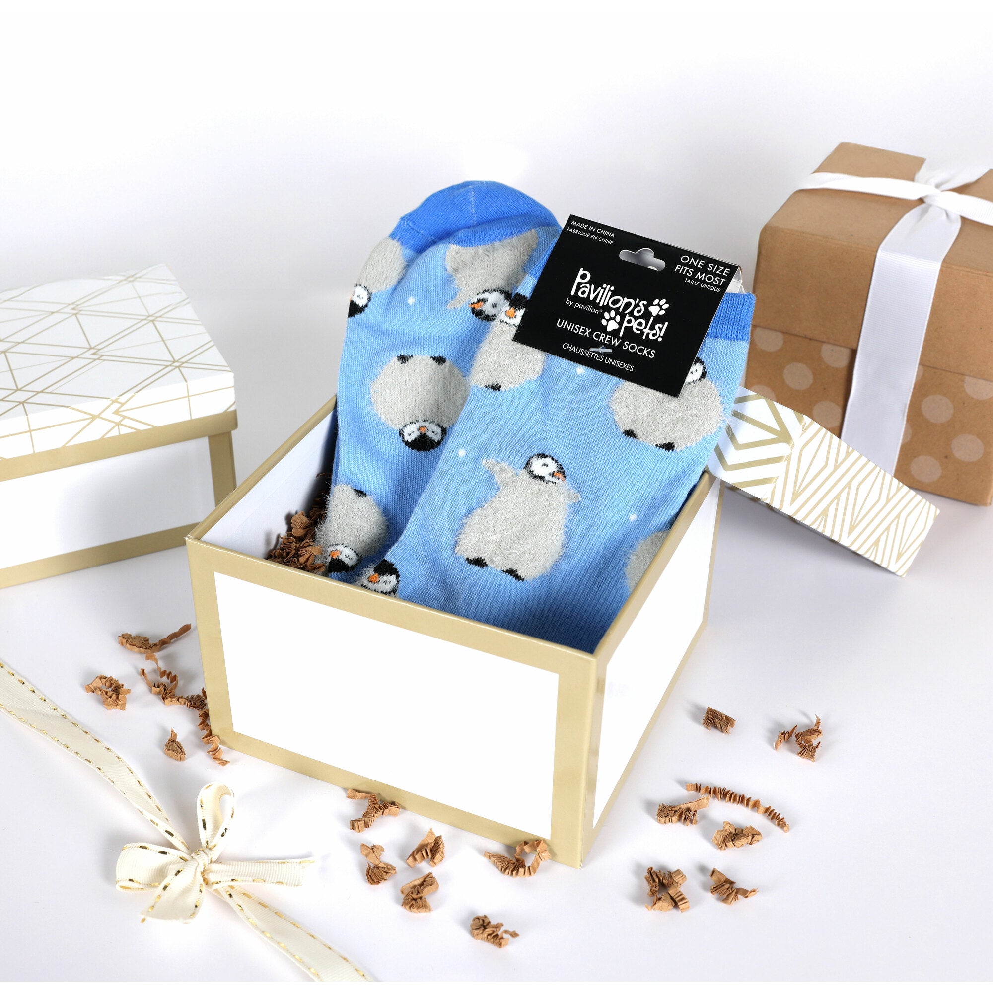 - IN-HOUSE DESIGN: Decorated with a repeating pattern of gray and black baby penguins on a soft blue background, these socks evoke arctic cuteness at its best. The darker blue toe and heel add contrast and visual interest while reinforcing wear areas.