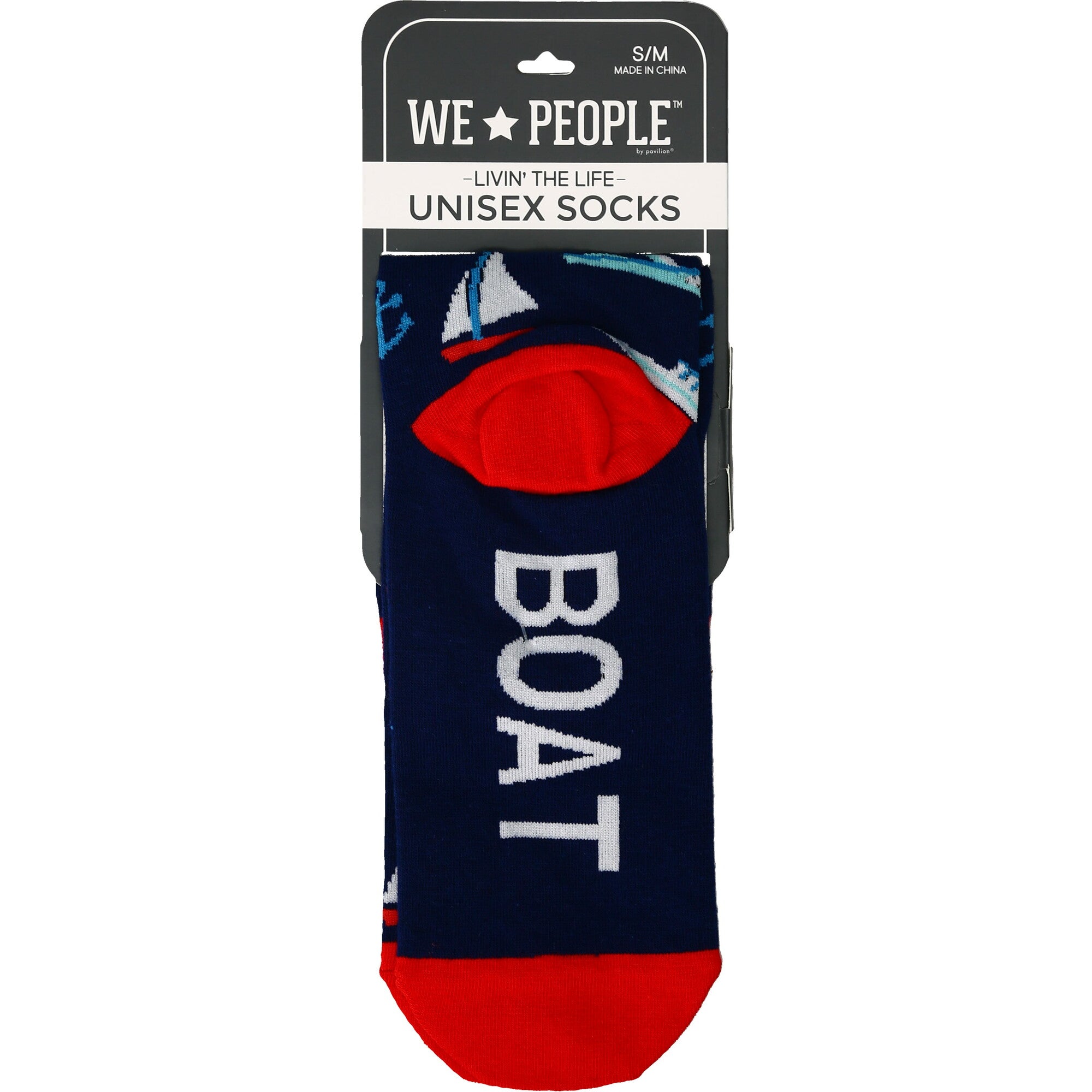 - IN-HOUSE DESIGN: "Boat Life" text is sewn into the base of the socks which feature a boat and anchor pattern.