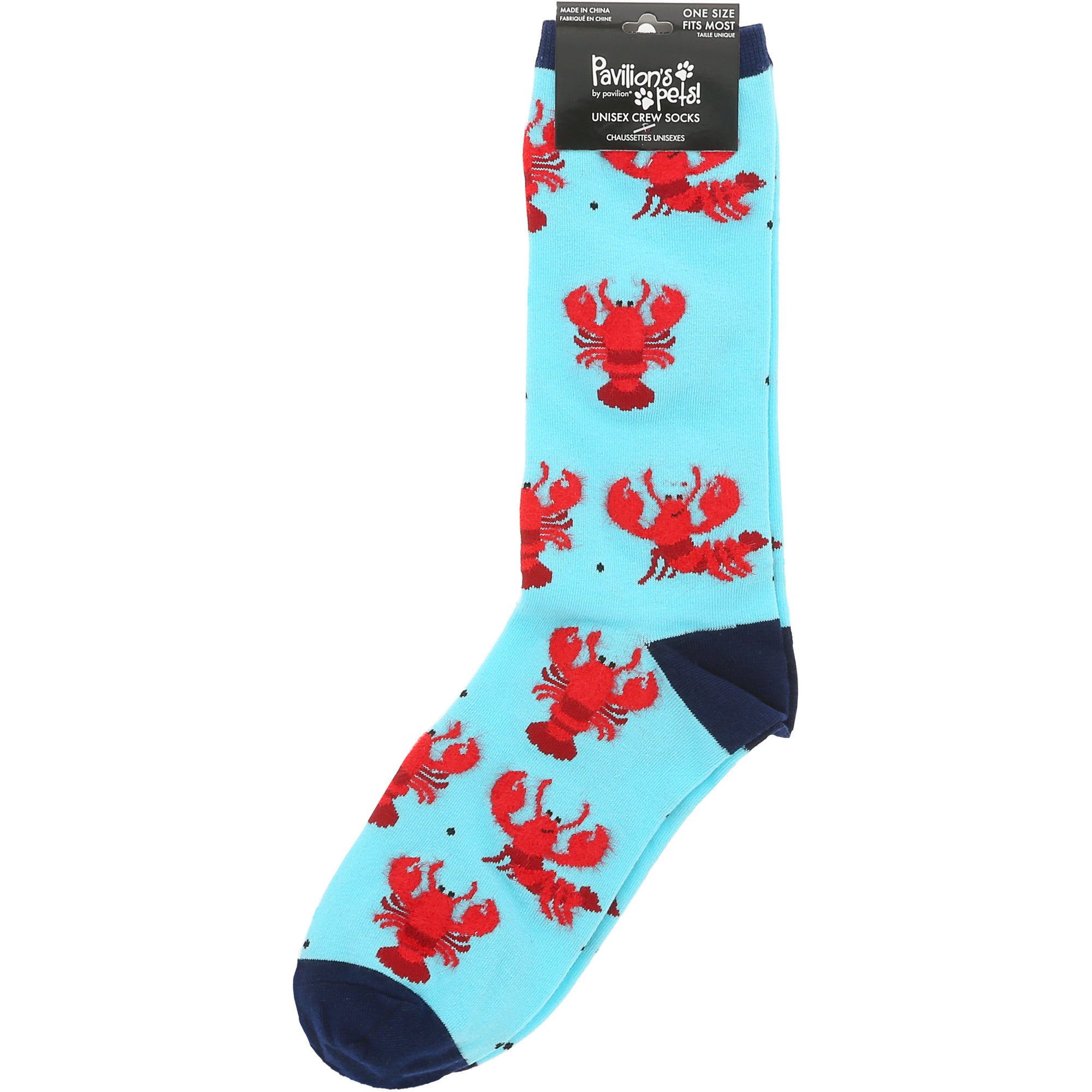 - IN-HOUSE DESIGN: Bright red lobsters pop against a coastal blue background, creating a seafood-themed showstopper. With navy accents at the heel, toe, and cuff, these socks are as bold as they are fun.
