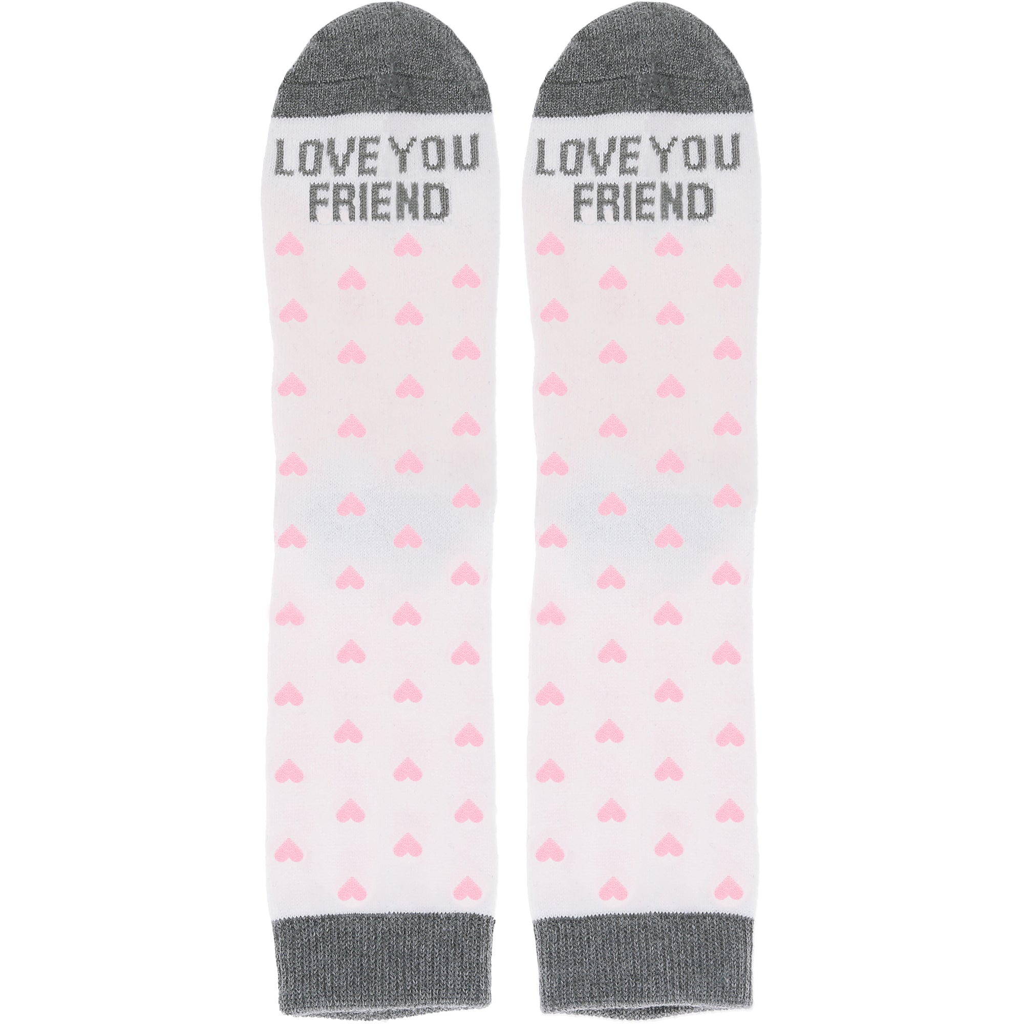 - IN-HOUSE DESIGN: The set features a heartfelt “Love You Friend” sentiment woven into the design, reminding your best friend of how much you care. The socks are decorated with an adorable heart pattern in soft pink, while the slippers include a matching heart motif and bow accent, making the set both visually appealing and meaningful. These charming details, combined with the anti-slip bottom, make it a stylish and practical choice for daily wear.