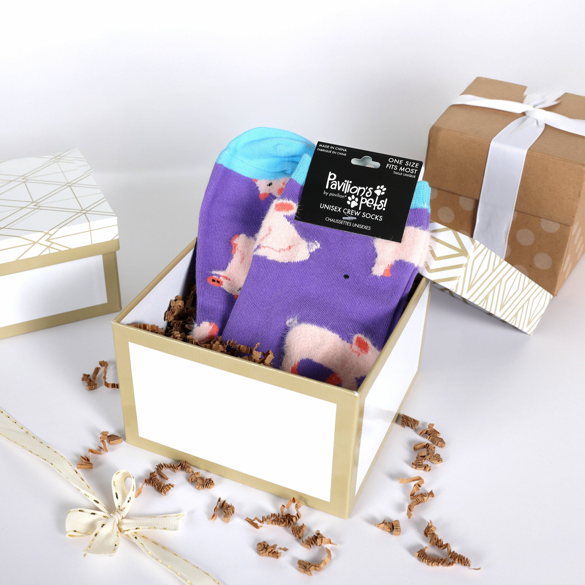 - IN-HOUSE DESIGN: This charming design features chubby pink piglets smiling and sitting on a lavender purple background. With light blue heels and toes for contrast, these socks offer pastel perfection and barnyard-inspired cuteness in every step.