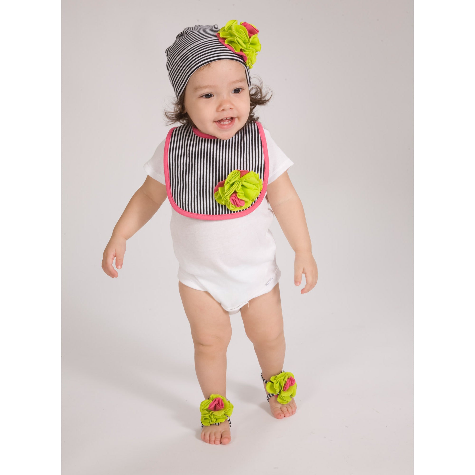 • IN-HOUSE DESIGN: Features a sewn-in flower and a striped design.