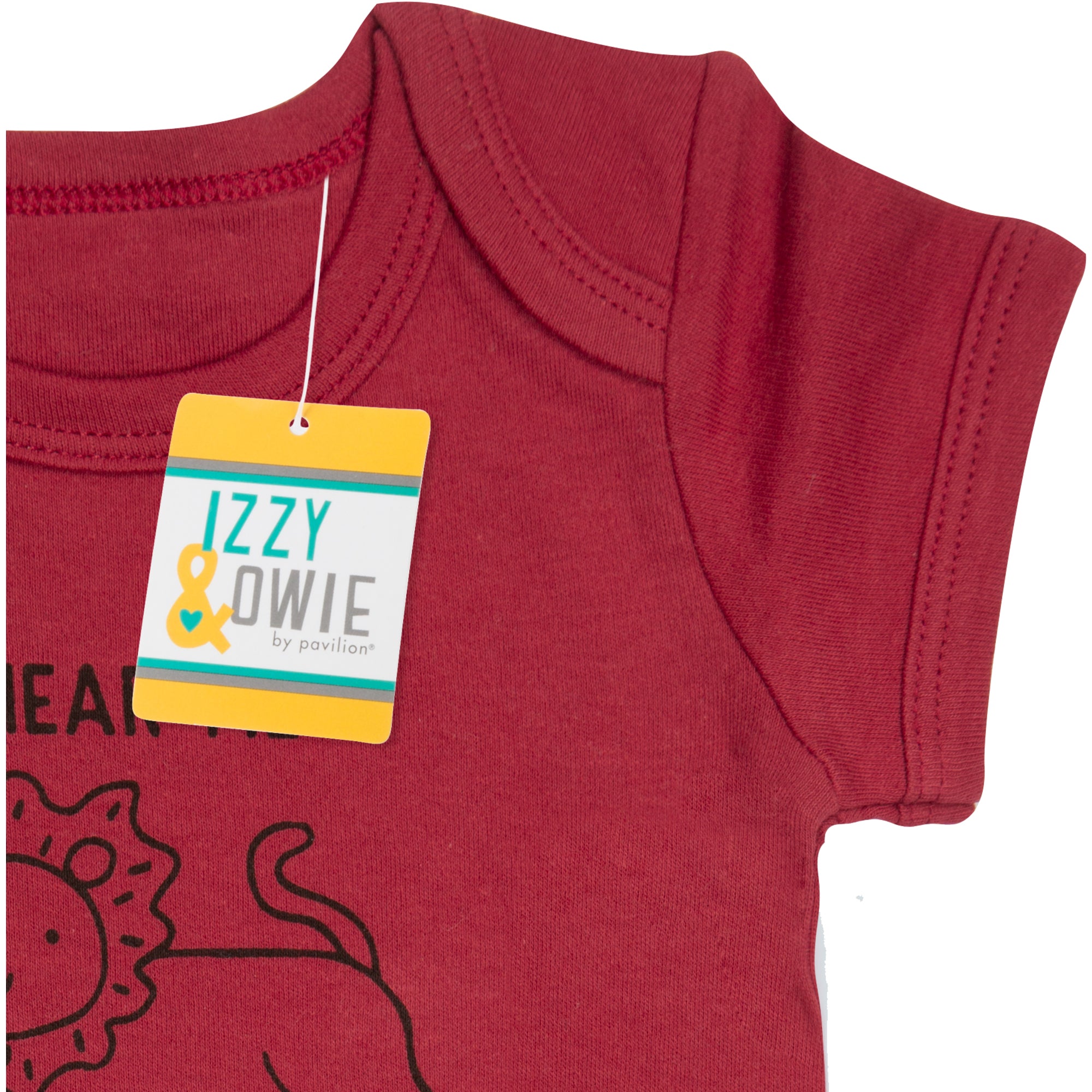 - PREMIUM QUALITY: Bodysuit for sizes 6-12 months, packaged in a plastic polybag with metal and ribbon hanger, is made from 100% cotton and features snap closures.