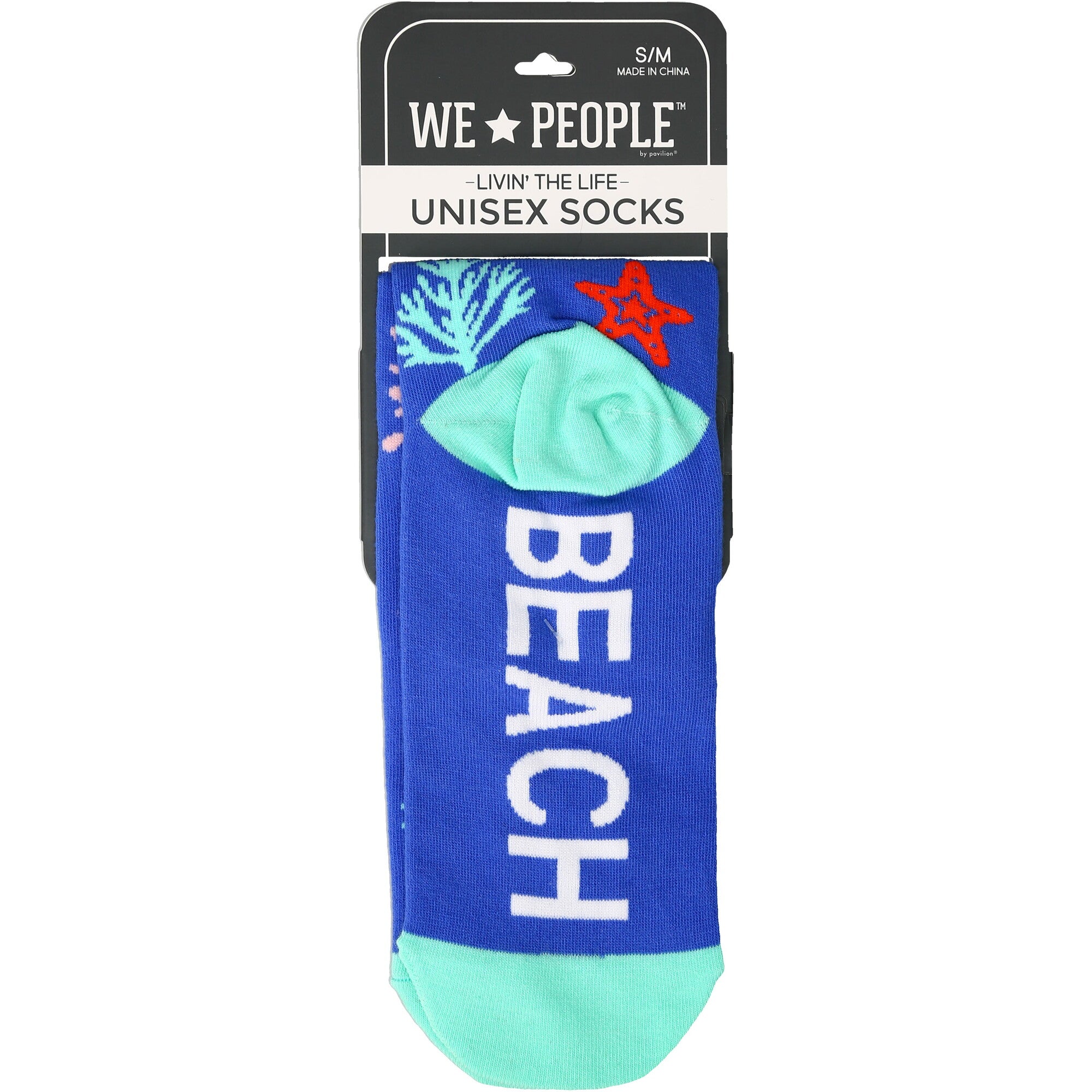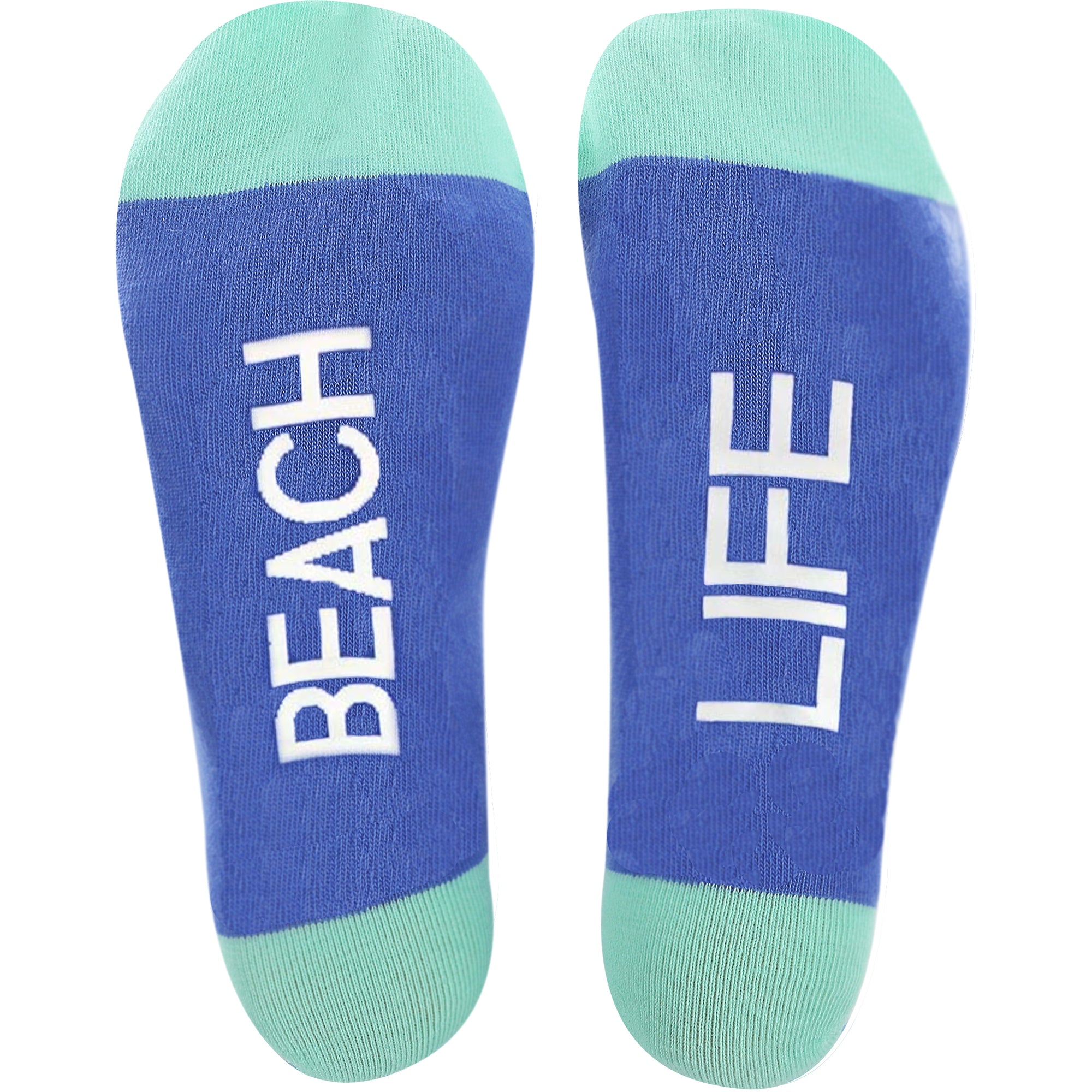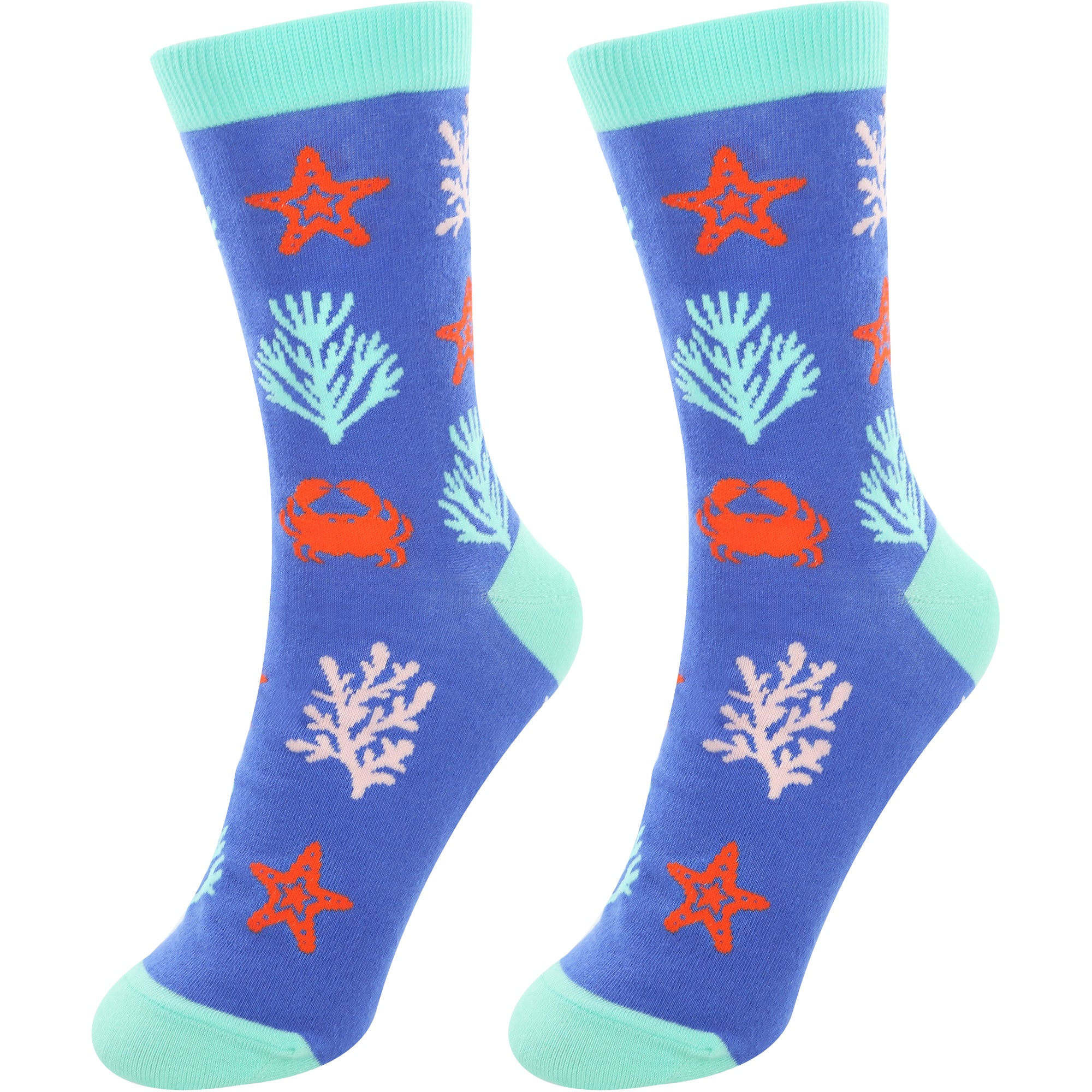 - IN-HOUSE DESIGN: "Beach Life" text is sewn into the base of the socks which feature a crab and coral pattern.