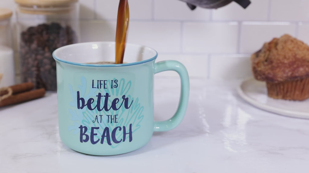 - IN-HOUSE DESIGN: Glossy "Life Is Better At The Beach" text and seaweed image are heat-printed onto the front of the mug.