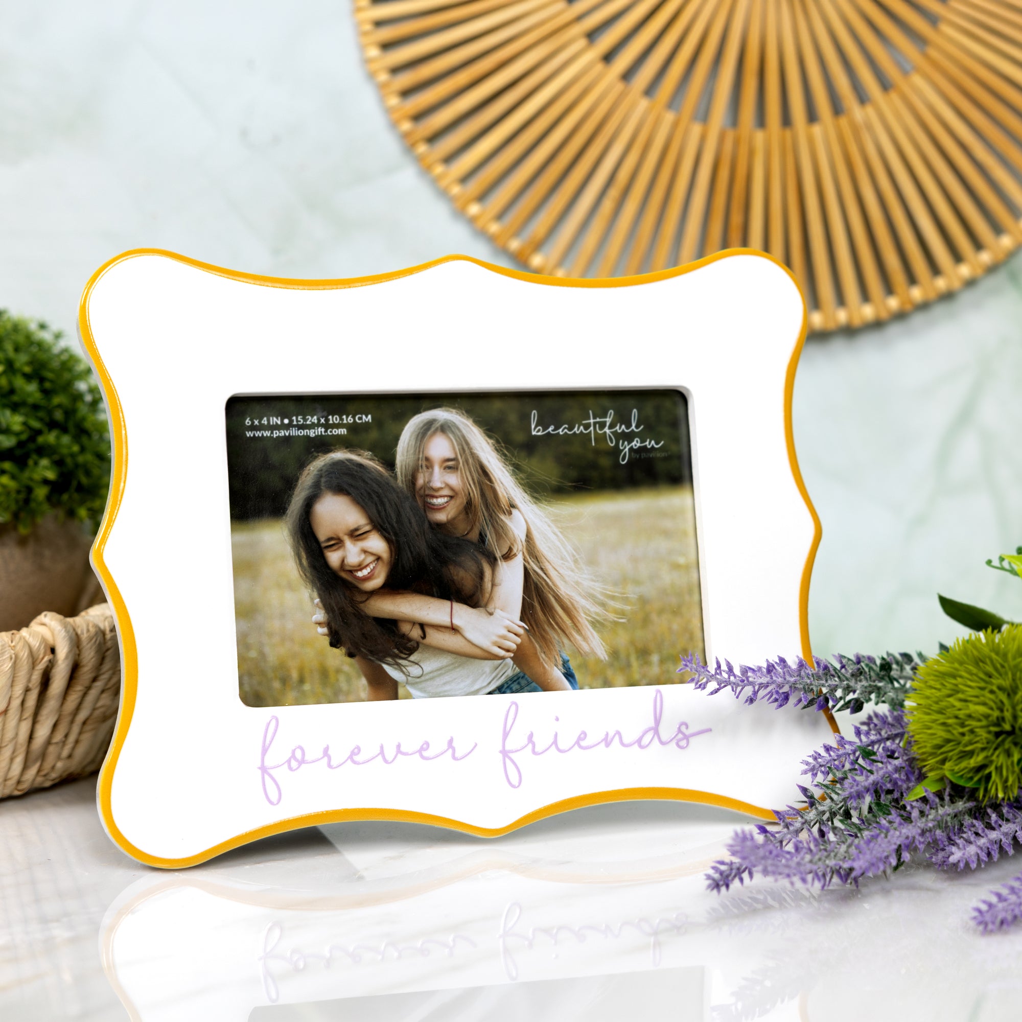 - IN-HOUSE DESIGN: Features a soft lavender embossed decal that reads “forever friends” beneath the photo window. Designed in-house for the Beautiful You collection, this frame balances meaningful sentiment with understated style, perfect for honoring the joy of long-lasting friendships.