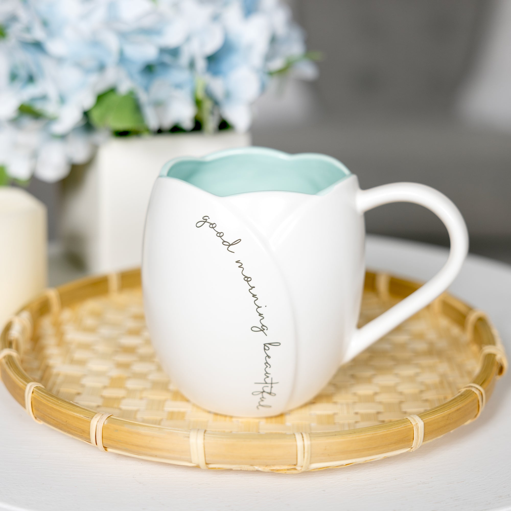 - IN-HOUSE DESIGN: Featuring a soft blue interior, this mug has a raised decal message reading "Good Morning Beautiful." A gentle and inspiring design, perfect for starting the day on a positive note.