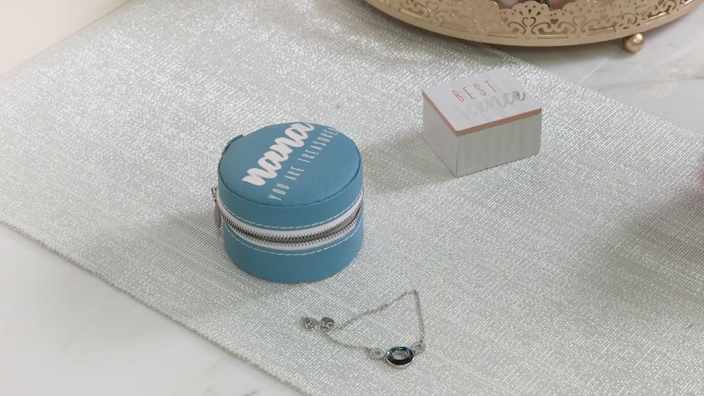 - IN-HOUSE DESIGN: "Nana; You Are Treasured" text is heat-stamped onto the outer of the case. The inner features a snap for holding rings, a small pouch, and three other compartments.