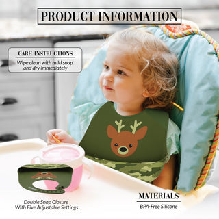 Woodland Green Camo Deer 12" Silicone Catch All Bib
