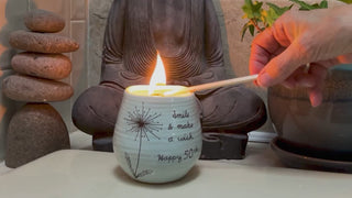 - PREMIUM QUALITY: 8 fl. oz. candle, packaged in a printed open-faced box, is made from ceramic and 100% soy wax, has a serenity scent and feet to avoid surface scratching.