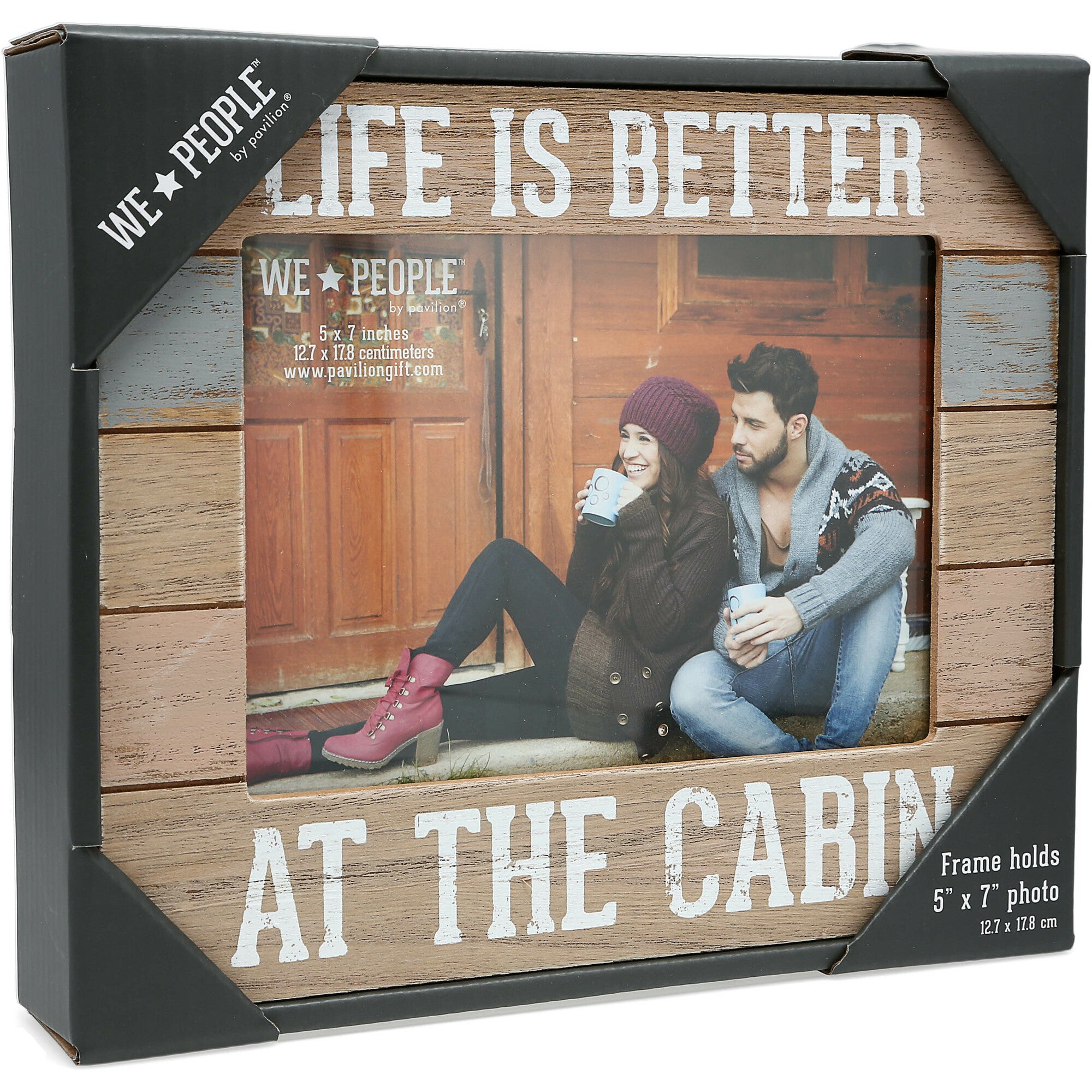 - IN-HOUSE DESIGN: Weathered light wood-washed shiplap look sturdy MDF construct with glass front. "Life Is Better At The Cabin" white decal sentiment. The backing has four metal tabs for photo replacement. Self-standing or can be hung by the edge.