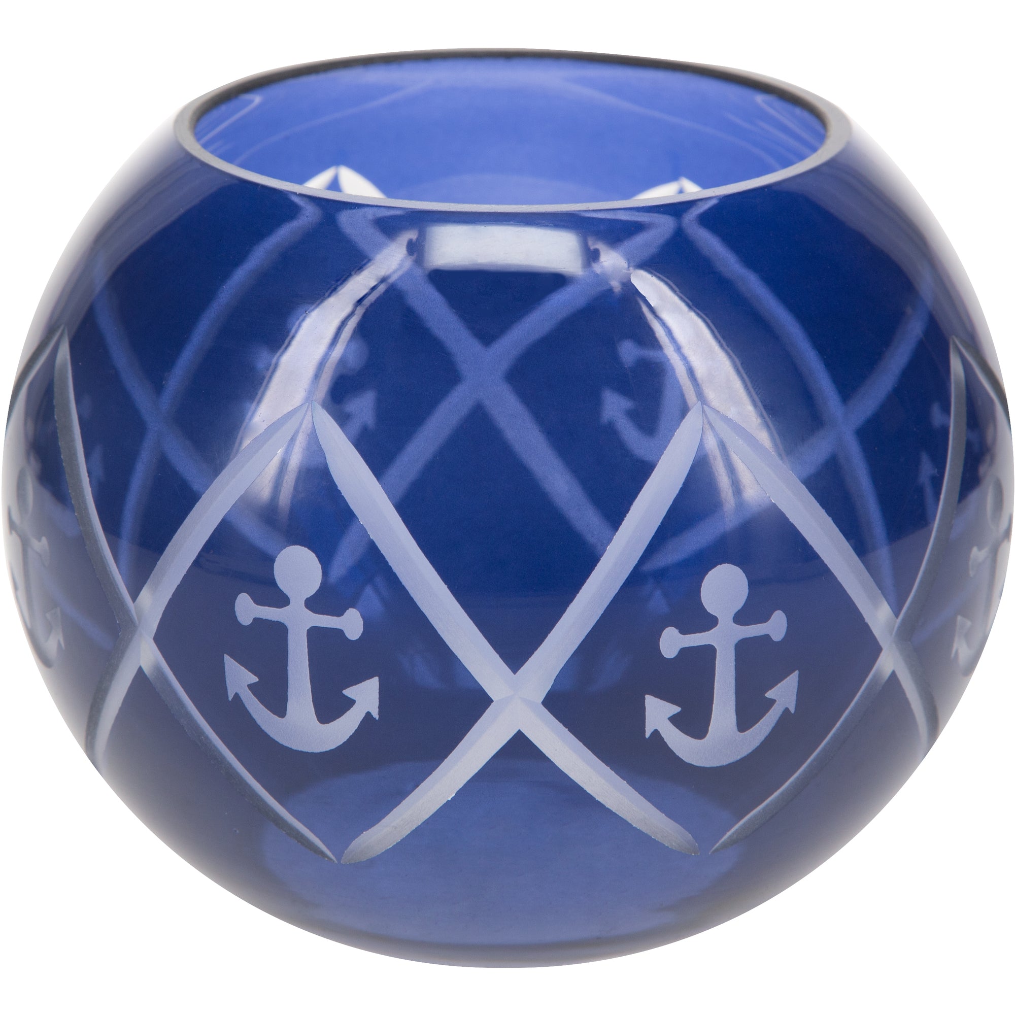 - IN-HOUSE DESIGN: Blue anchor design is printed all around the outside of the candle holder.