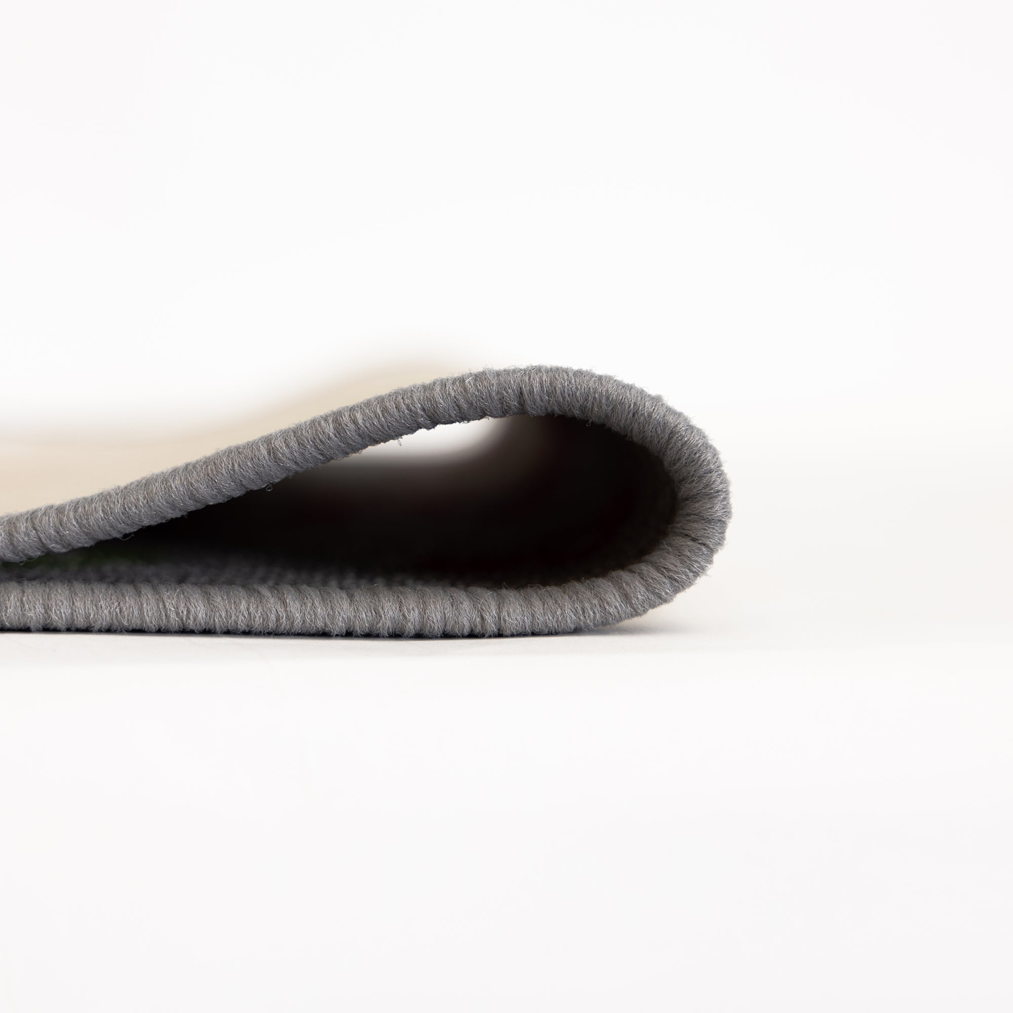 - PREMIUM QUALITY: 27.5" x 17.75" floor mat is made from 100% nylon and has a non-slip latex backing. It is packaged in a plastic polybag with a plastic hanger and cardboard header. The ribbed striped gray rug is soft and comfortable on your feet, and the stitched edges hold the mat together nicely.