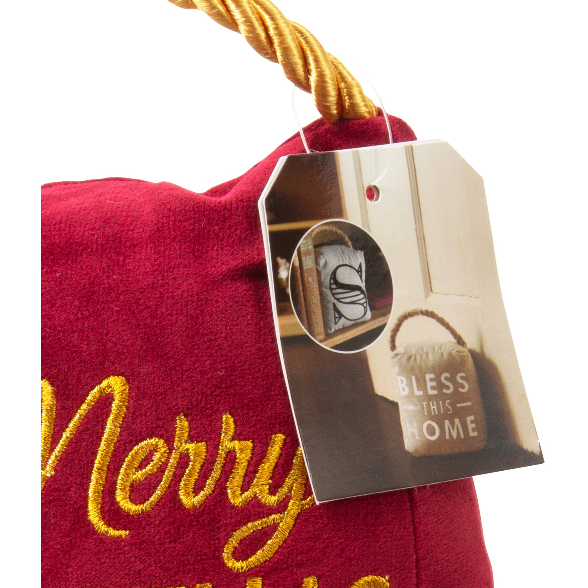 - IN-HOUSE DESIGN: "Christmas Means Family And Friends" text is embroidered onto the front of the door stopper.