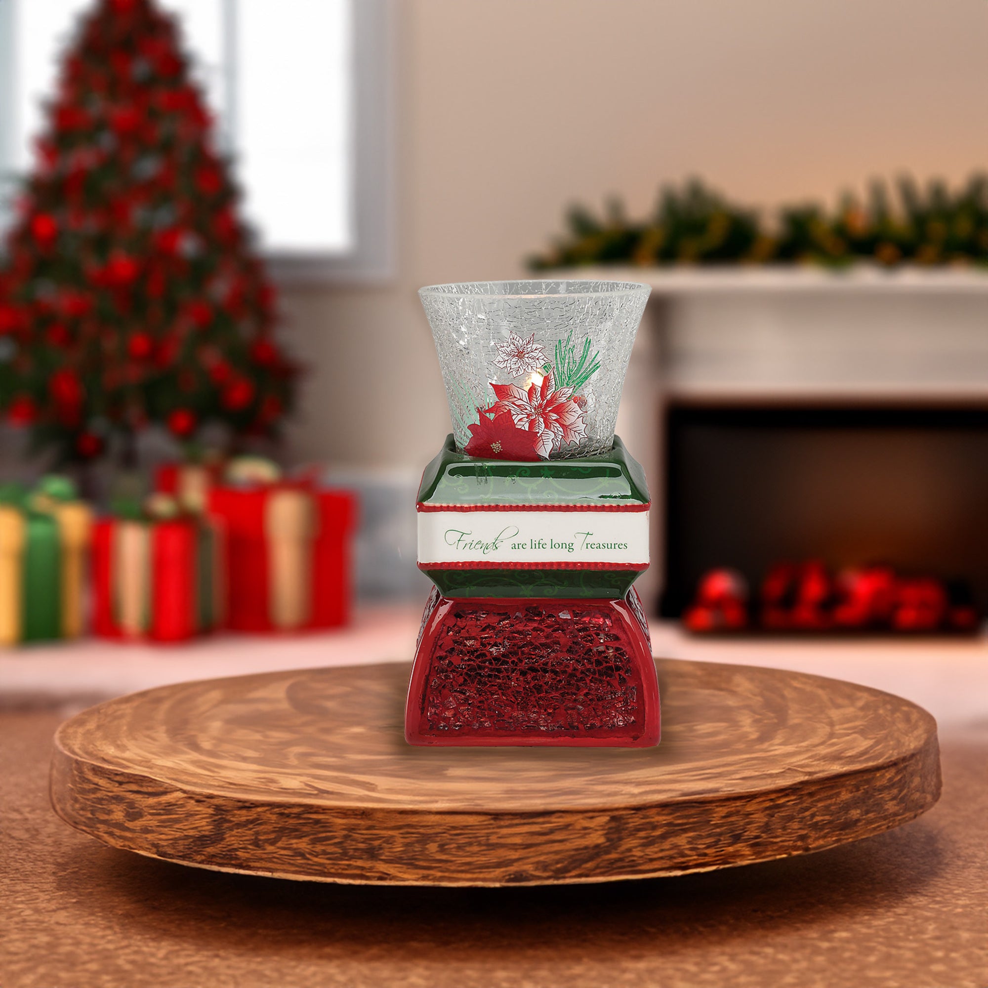 • IN-HOUSE DESIGN: "Friends Are Life Long Treasures That Make The Holidays Special" text is printed onto the front of the candle holder.