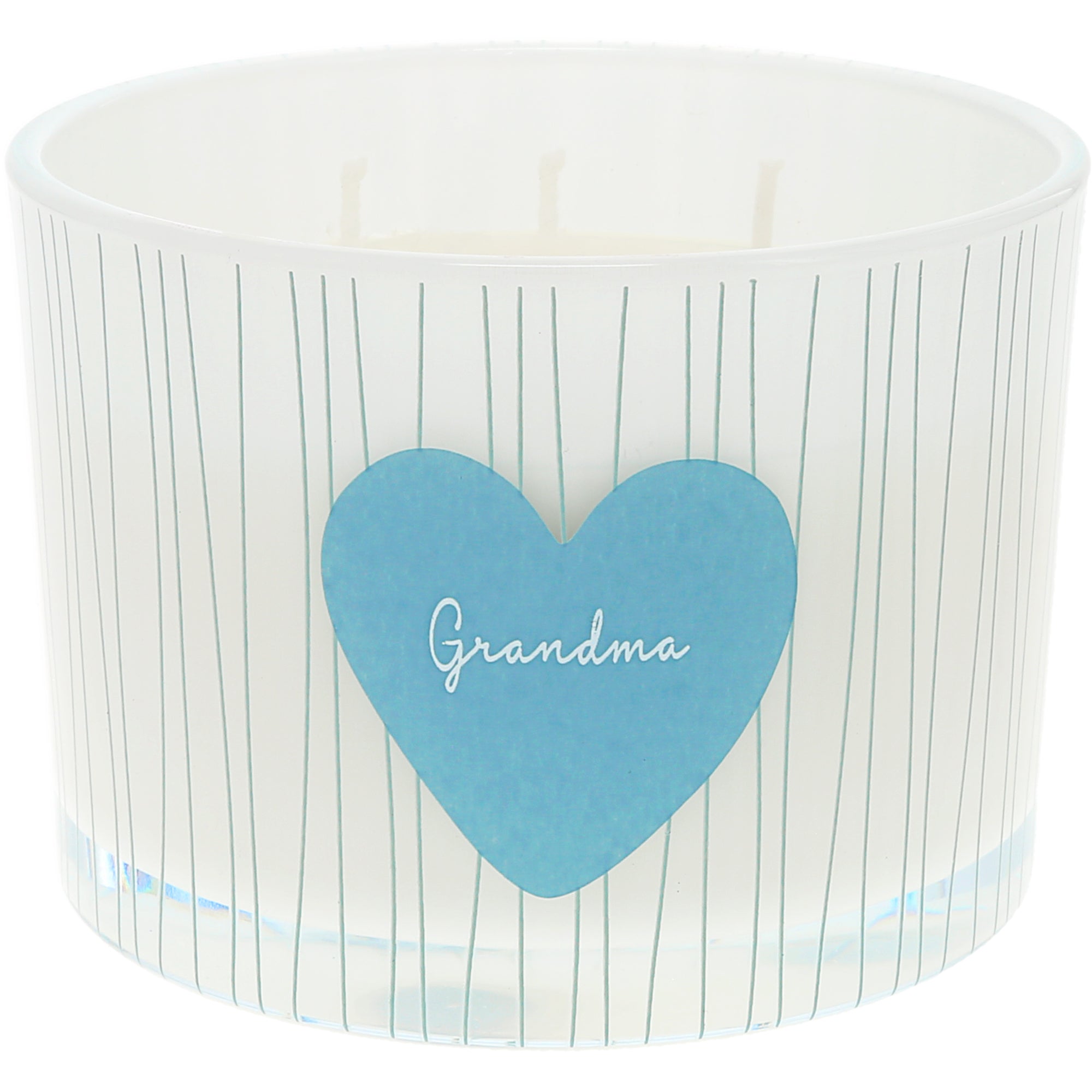 - PREMIUM QUALITY: This 11 oz candle is made with 100% soy wax for a clean, even burn and low soot. The matte white vessel features subtle vertical stripe detailing and a solid teal heart with the scripted word “Grandma.” Poured with a cotton wick and high-quality fragrance oils, it delivers long-lasting performance and a calming aromatic experience. Packaged in a protective white die-cut box.
