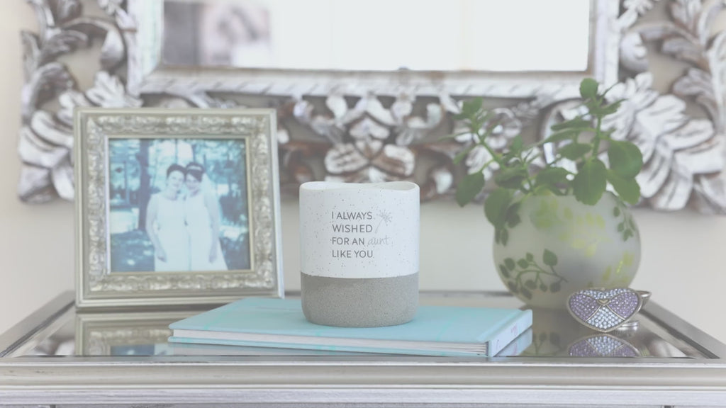 - IN-HOUSE DESIGN: The new & innovative candle offers a unique message for your loved one within the wax as time progresses. You will begin to see the black dandelion and "Amazing Aunt" sentiment after about 10 minutes. As you watch, the entire decal will appear after 50 minutes. Then, the message will hide again and reappear with each burn. The front of the candles has a simplistic "I Always Wished For An Aunt Like You" decal accompanied by a light gray dandelion.
