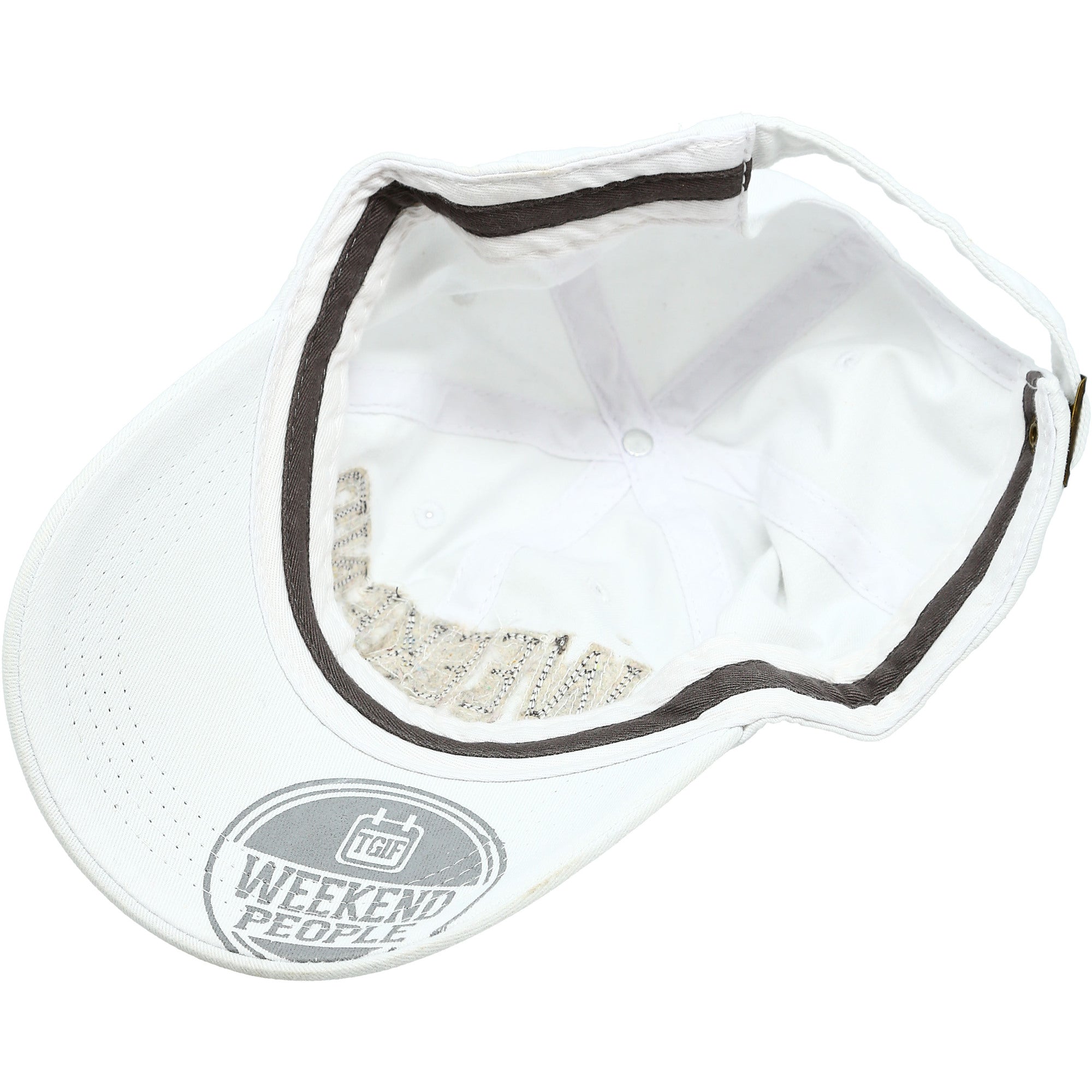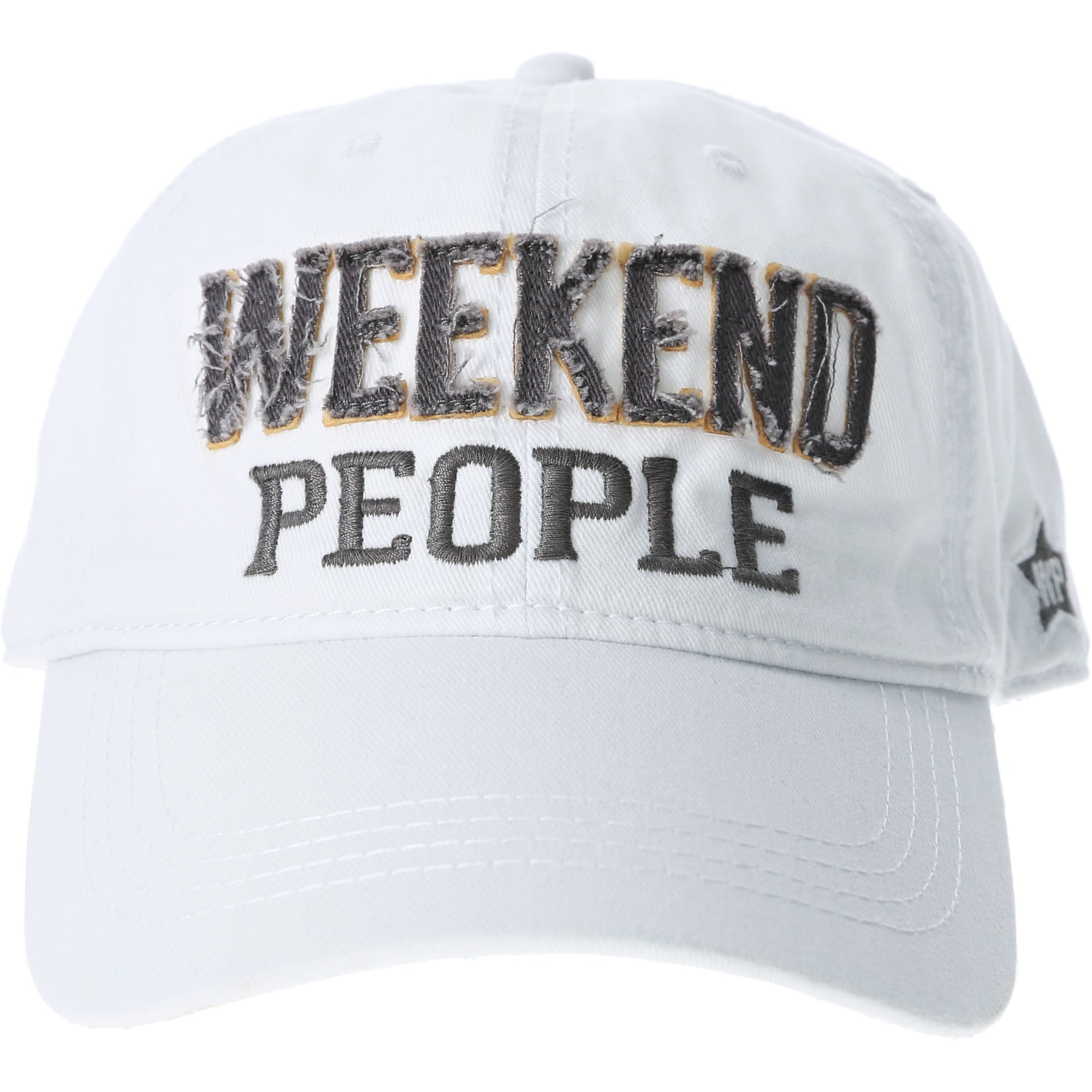 - IN-HOUSE DESIGN: "Weekend People" text is embroidered and sewn-in with a frayed edge, as is the We People logo on the side of the hat. The brim features screen-printed text showing the "Weekend People" logo.