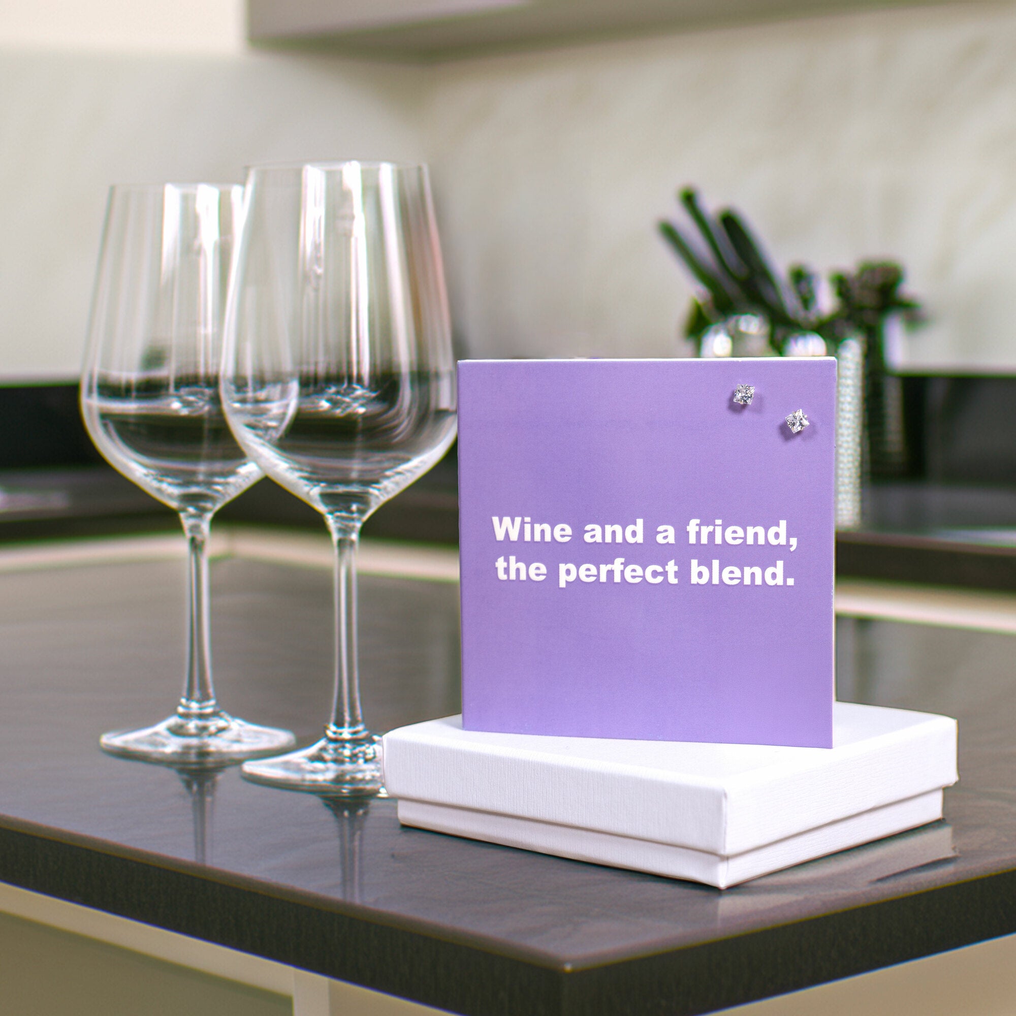 - IN-HOUSE DESIGN: Mounted on a folded purple card, the message says: “Wine and a friend, the perfect blend.” Embossed text adds an upscale feel, making it a classy and fun nod to strong friendships and wine nights.