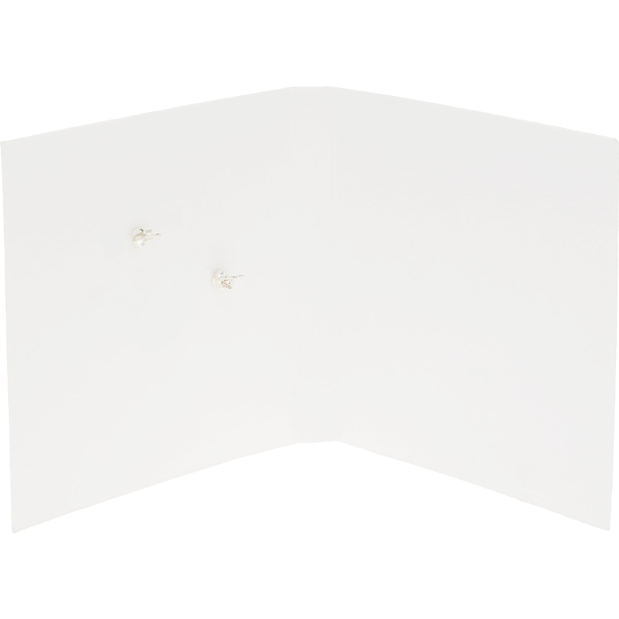 - PREMIUM QUALITY: A 3.25" x 3.25" blank, thick white paper greeting card holds a pair of prong-set earrings on its front. The small .20" studs with one 5mm stone, solid sterling silver, and cubic zirconia gem earrings feature a push-back backing. The card is packaged inside a plastic polybag, with cotton padding between the front and back, neatly tucked inside a white gift box with a logo printed on the top.