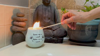 - PREMIUM QUALITY: 8 fl. oz. candle, packaged in a printed open-faced box, is made from ceramic and 100% soy wax, has a serenity scent and feet to avoid surface scratching.