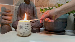 - PREMIUM QUALITY: 8 fl. oz. candle, packaged in a printed open-faced box, is made from ceramic and 100% soy wax, has a serenity scent and feet to avoid surface scratching.