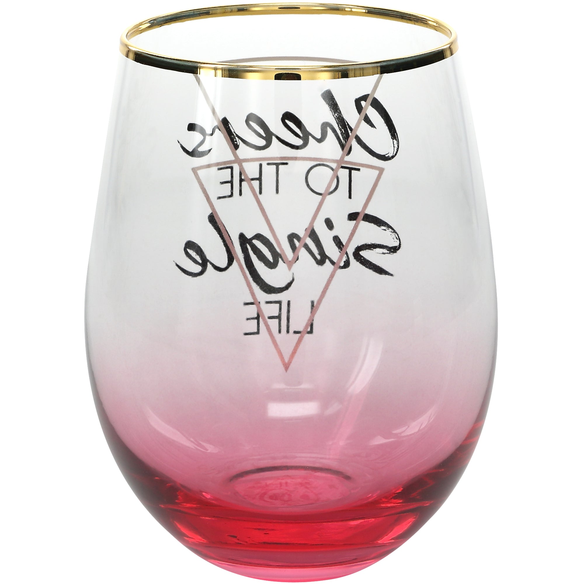 - IN-HOUSE DESIGN: "Cheers To The Single Life" text decal is applied to the front of the glass, alongside a heat-stamped gold design and an ombre spray-painted base.