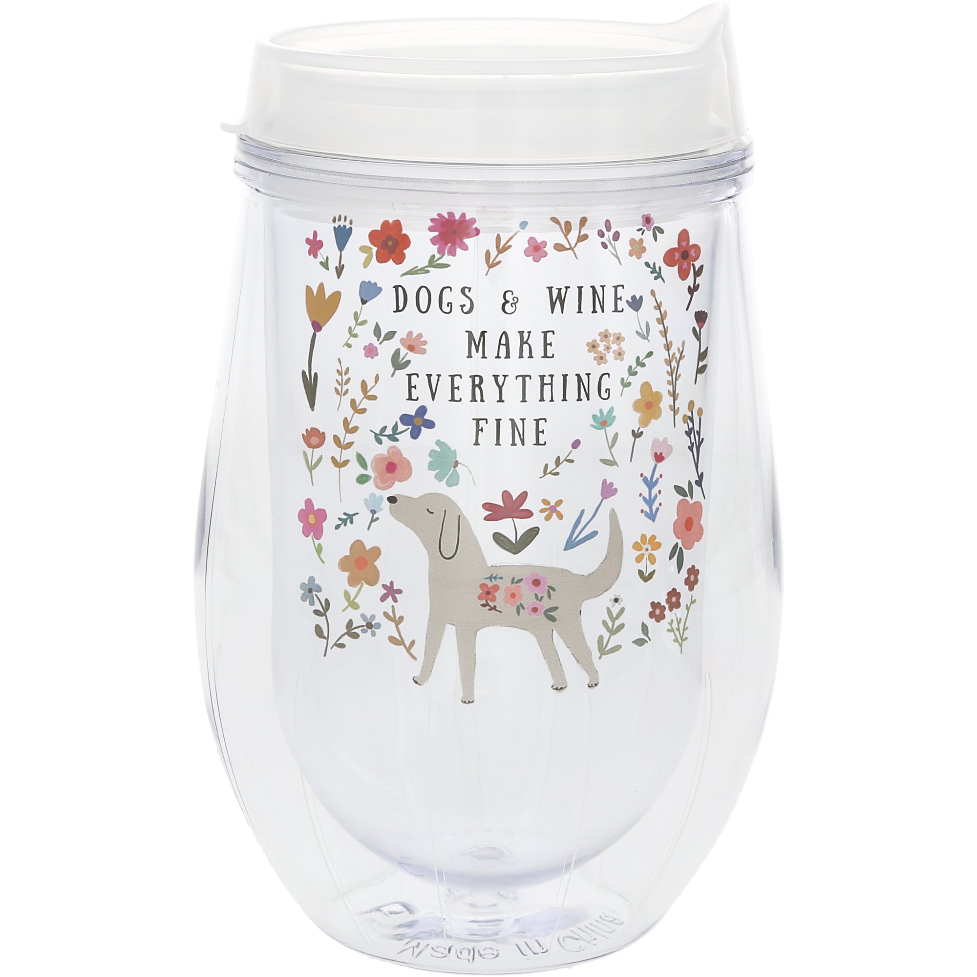 - IN-HOUSE DESIGN: Featuring the playful phrase "Dogs & Wine Make Everything Fine," this tumbler showcases vibrant floral patterns and a charming dog silhouette. The colorful and uplifting artwork captures the fun and love that come with being a pet parent, making it an eye-catching and conversation-starting piece. The clear acrylic material enhances the brightness of the design, ensuring a sleek and modern look that fits in with any home decor.