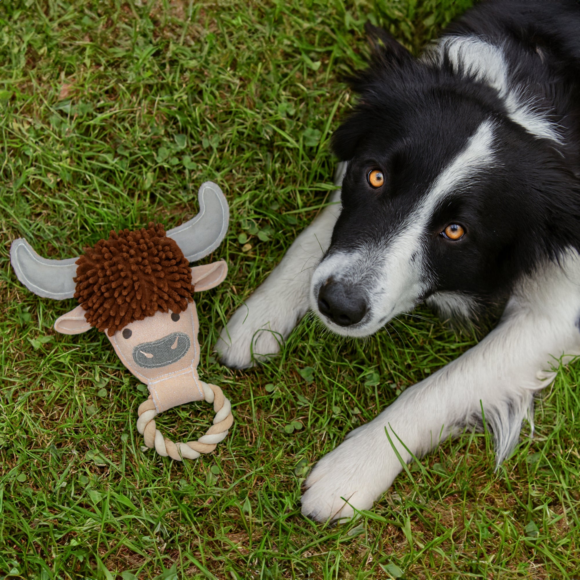- IN-HOUSE DESIGN: Expertly crafted to resemble a Highland cow’s face, this toy includes horn details, a fuzzy textured hair topper, and embroidered facial features that create a whimsical farm aesthetic. The optional removable faux fur topper adds an extra layer of interactive texture.