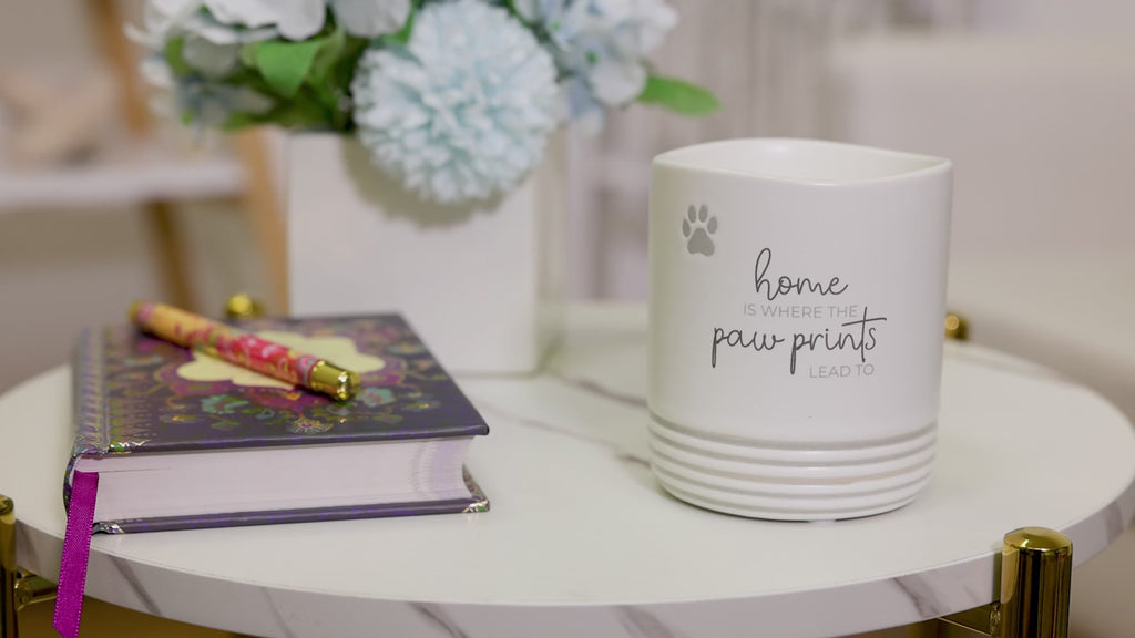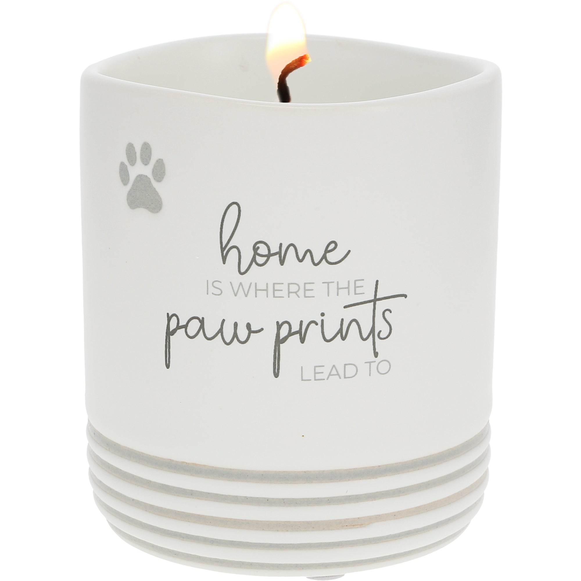 - IN-HOUSE DESIGN: The new & innovative candle offers a unique message for your loved one within the wax as time progresses. You will begin to see the gray pawprint pattern after about 10 minutes. As you watch, the entire decal will appear after 50 minutes. Then, the message will hide again and reappear with each burn. The front of the candles has a simplistic "Home Is Where The Pawprints Lead To" decal accompanied by an embossed pawprint.