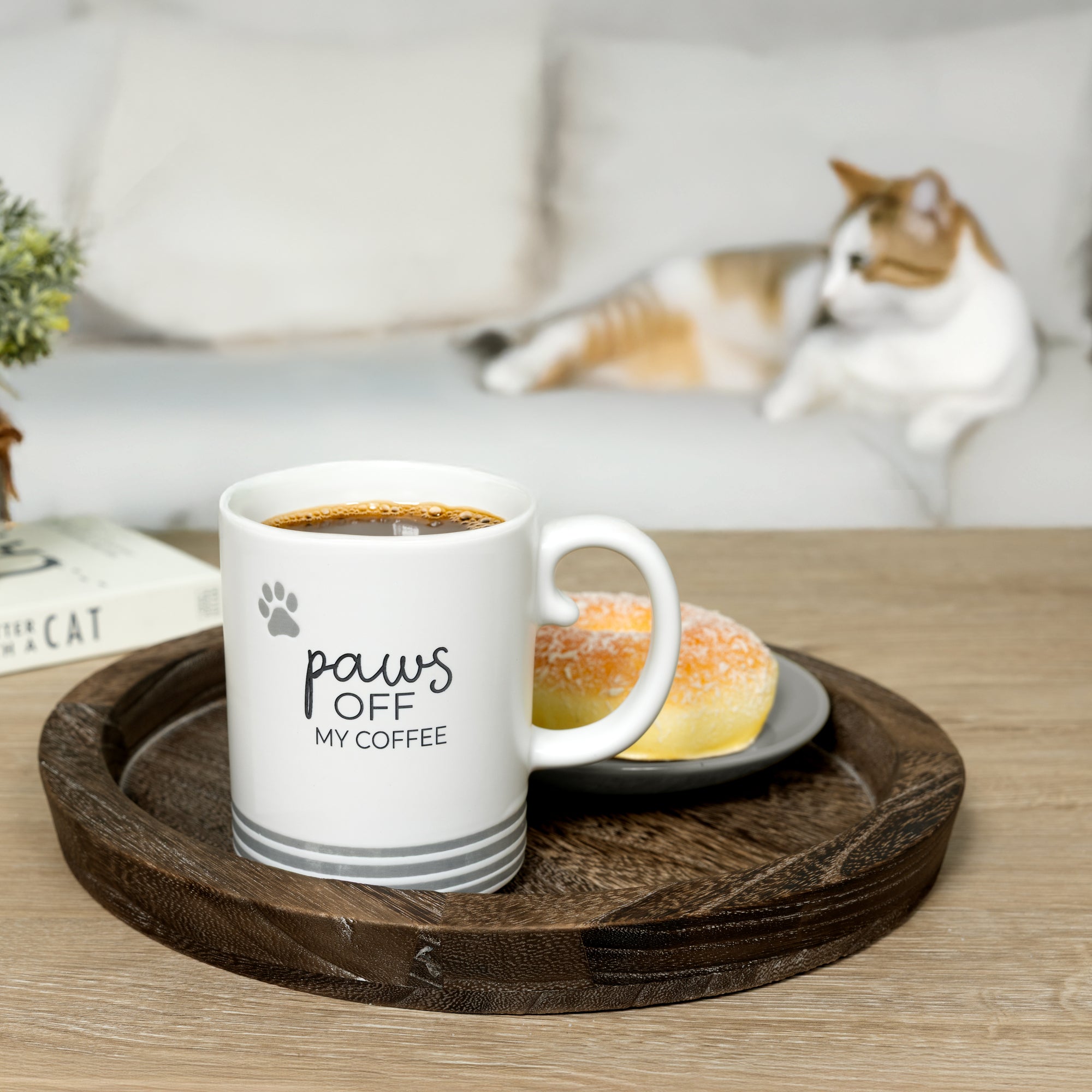 • IN-HOUSE DESIGN: Features the fun and sassy phrase “Paws off my coffee” in clean black script with a small paw print accent. The minimalist white colorway and raised details make this mug feel modern and stylish while still embracing pet-parent humor.