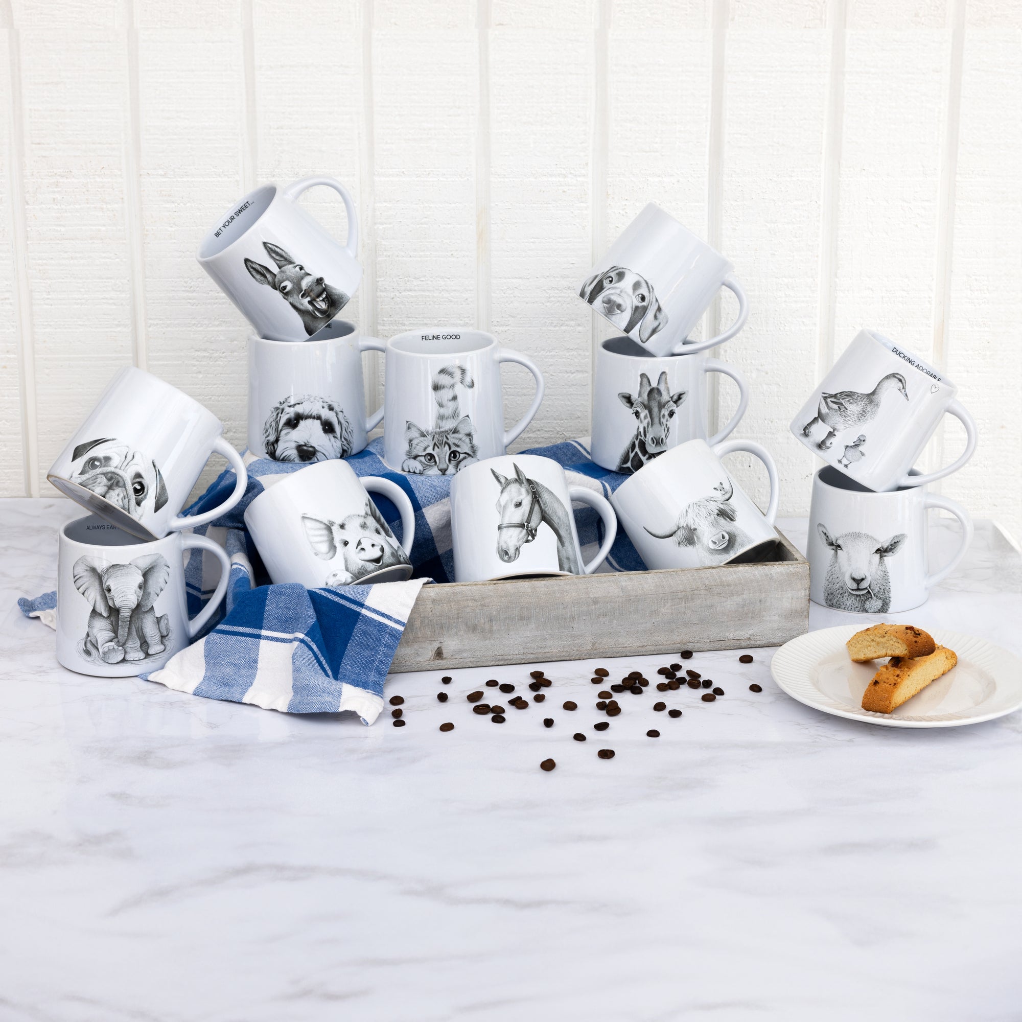 - IN-HOUSE DESIGN: The "Pugs & Kisses" design by Katherine Sheard features a charming illustration of a pug paired with the adorable phrase "Pugs & Kisses." The same sentiment is repeated on the inside rim, adding a delightful surprise with every sip. The detailed pug illustration is sure to capture the hearts of dog lovers, especially those who have a soft spot for pugs. The playful design is both fun and heartwarming, making this mug a standout piece in any drinkware collection.