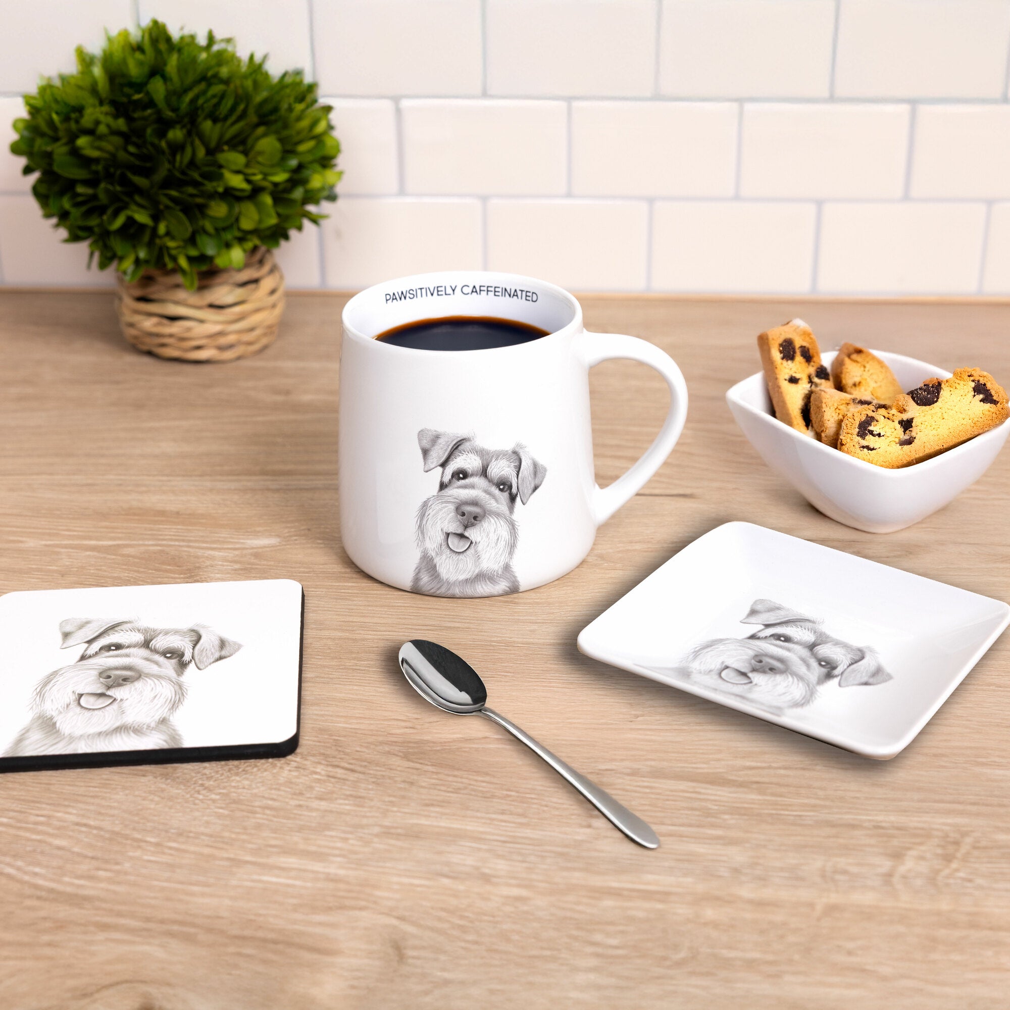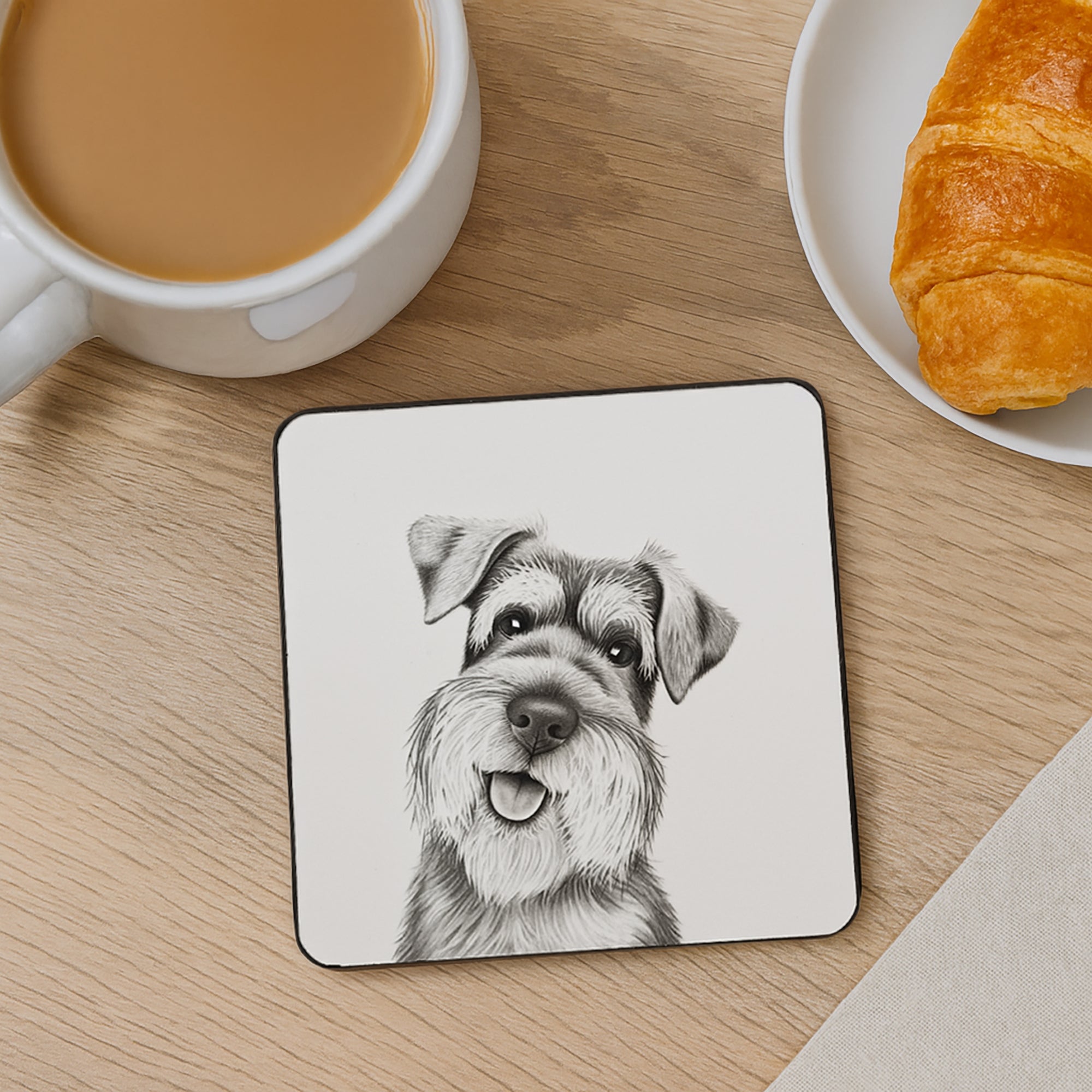 • IN-HOUSE DESIGN: From the Animal Antics by Katherine Sheard collection, this coaster features a lifelike pencil-style illustration of a cheerful Schnauzer. The black-and-white artwork highlights the breed’s distinctive personality, expressive eyes, and textured fur, capturing its lovable, loyal nature in an artful and humorous way.