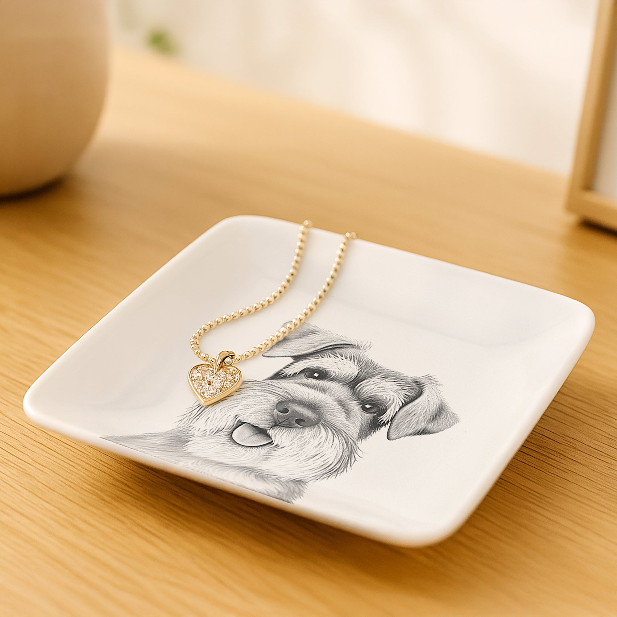• PREMIUM QUALITY: Crafted from durable stoneware, this 4.25" square keepsake dish combines charm and functionality. The surface features detailed decal artwork of a joyful Schnauzer drawn in Katherine Sheard’s signature pencil-style illustration. Dishwasher and microwave safe, this piece is both practical and decorative. Prop 65 approved for safe, long-term use. Each dish comes packaged in a custom open-face box for easy gifting and display.