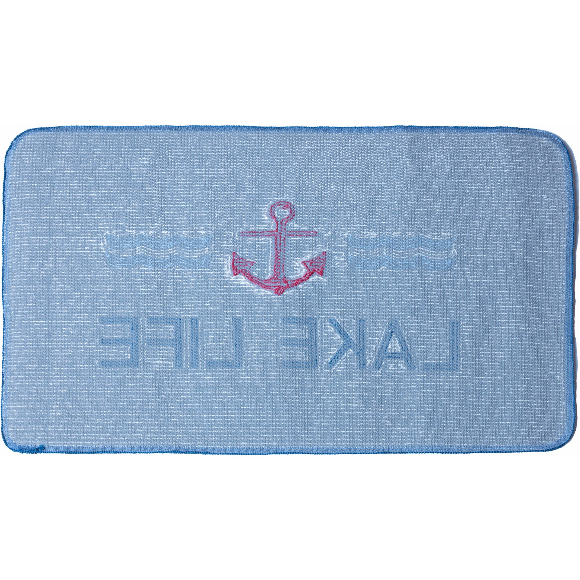 - IN-HOUSE DESIGN: The large red anchor, blue waves, and dark blue "Lake Life" sentiment design sit on the bath mat's center on a white background. Stepping out of the shower will accompany a soft and pleasant experience with a classy and modern touch.