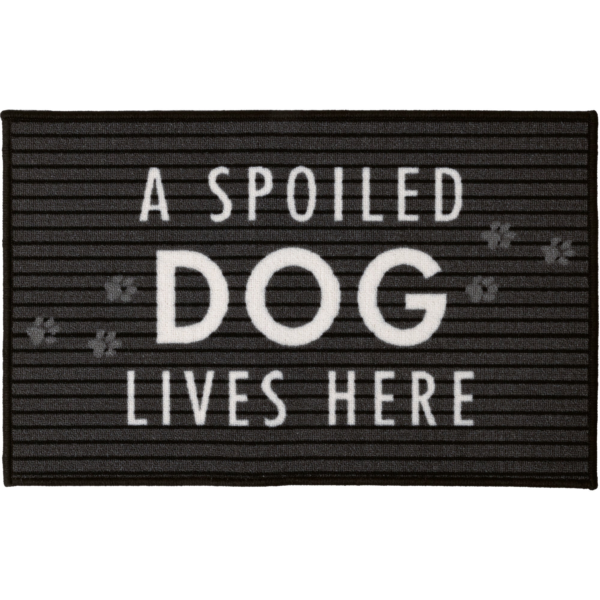 - IN-HOUSE DESIGN: The classic gray background of the mat is accented by paw prints, a striped pattern, and text that reads, "A Spoiled Dog Lives Here." It provides a stylish yet playful statement that lets guests know exactly who rules the household.
