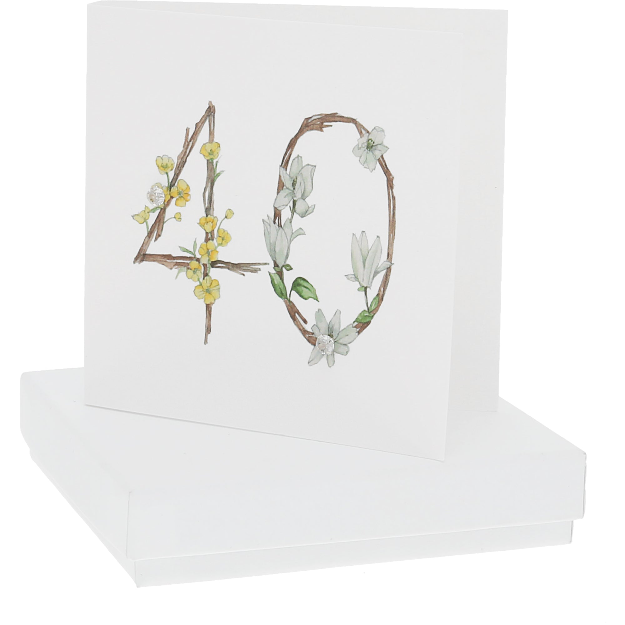 - IN-HOUSE DESIGN: The cheerful celebratory printed watercolored design branch, flower, and greenery design. The "4" features beautiful yellow buttercups with one earring in the center of the floral design, whereas the "0" has gorgeous white magnolia flowers with the second earring placed at the bottom of the number inside of a flower.