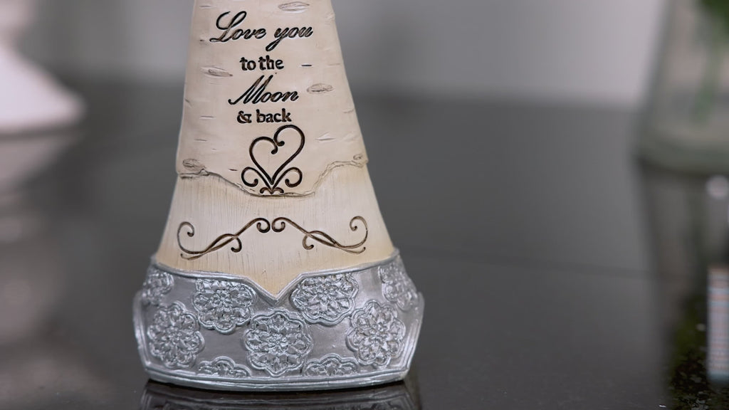 - IN-HOUSE DESIGN: "Love You To The Moon And Back" text is debossed and painted onto the front of the angel, alongside an intricate silver design and moon. The foam pads on the bottom to prevent surfaces from being scratched.