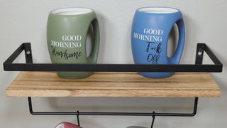 - IN-HOUSE DESIGN: "Good Morning Fuck Off" white and black sentiment decal on the front side of the matte blue cup. The Interior is white and has a glossy glaze prop 65 food-safe finish. We designed and created this mug to blend in with any of your kitchen's current drinkware collections with a refined, modern, and aesthetically pleasing look paired with humor and relatable sentiment.