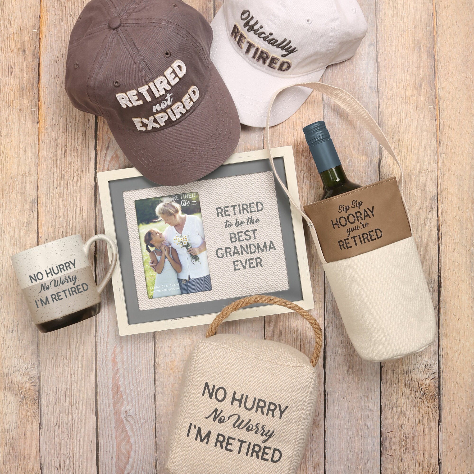 - IN-HOUSE DESIGN: "No Hurry; No Worry; I'm Retired" text is printed onto the mug on top of a speckled pattern.